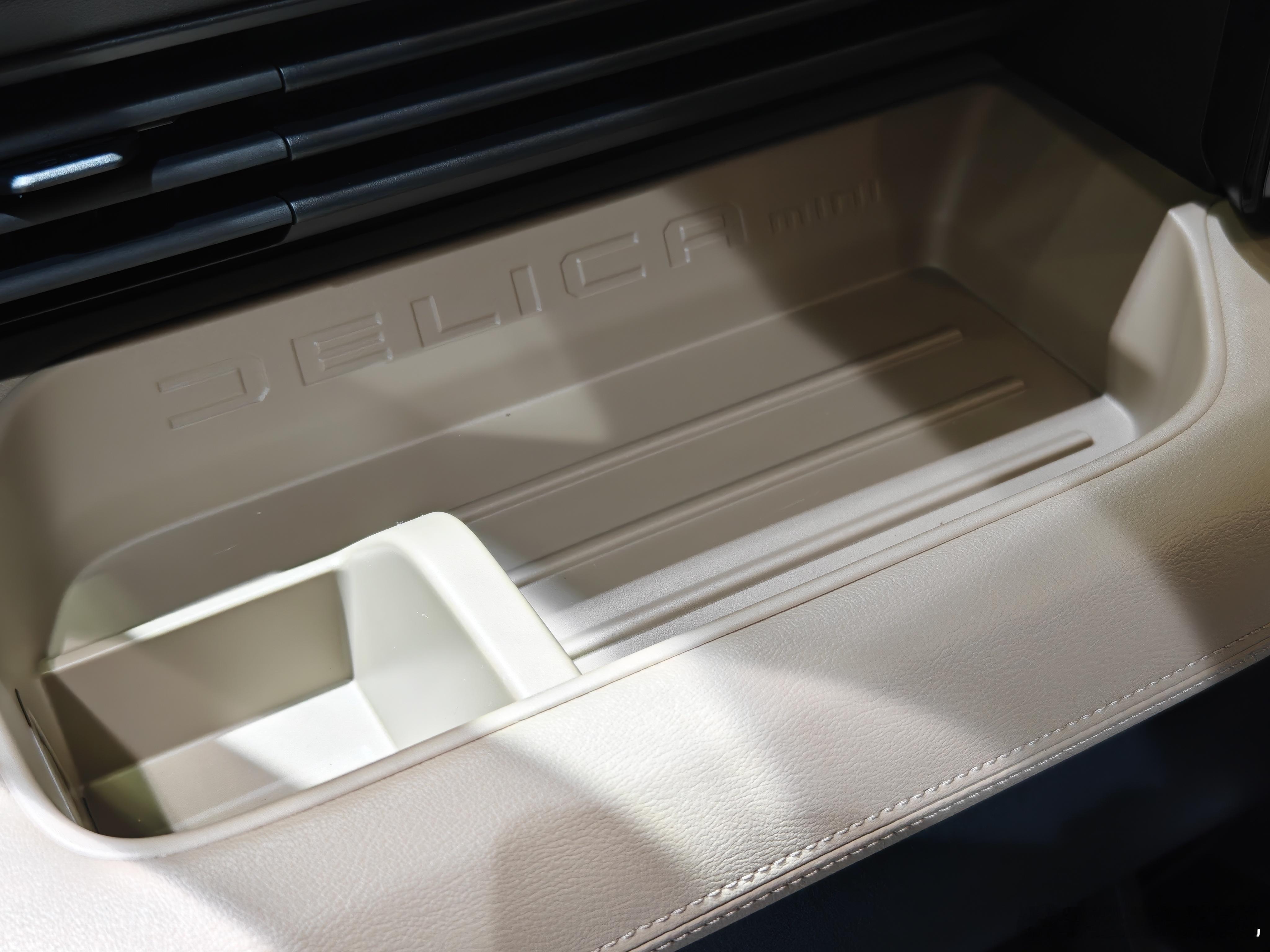 同时在它的内饰上也有非常多的储物细节设计,包括大量的储物格空间,可以扩展的后备箱空间。另外并排坐的前排座椅非常的舒适柔软,第二排也可以进行超长的前后移动。并且也可以进行放倒,这样可以扩展出更大的后备箱空间或者是后排的乘坐空间。另外Delica mini还在后排配备了包括小桌板这样的设计,整个的创新性还是做的很好。