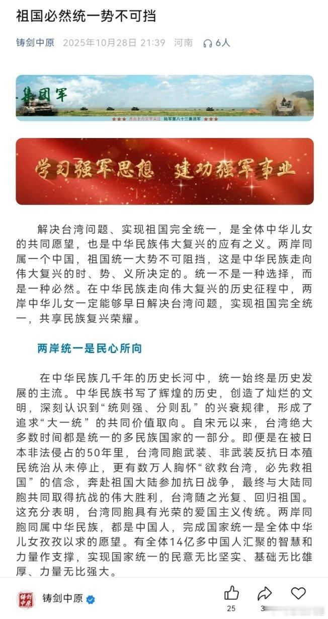 青山遮不住,毕竟东流去。两岸统一既是历史定论、法理必然,也是民心所向、大义所在,更是不可阻挡、不可逆转的时代洪流。