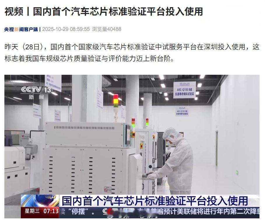 国内首个国家级汽车芯片标准验证中试服务平台启动了,拥有13个专业试验室,包括车规级芯片环境及可靠性试验室、失效分析试验室、信息安全试验室和性能测试试验室等,配备了80余套试验设备,具备30余项汽车芯片标准的验证试验能力,推动中国汽车芯片的质量提升