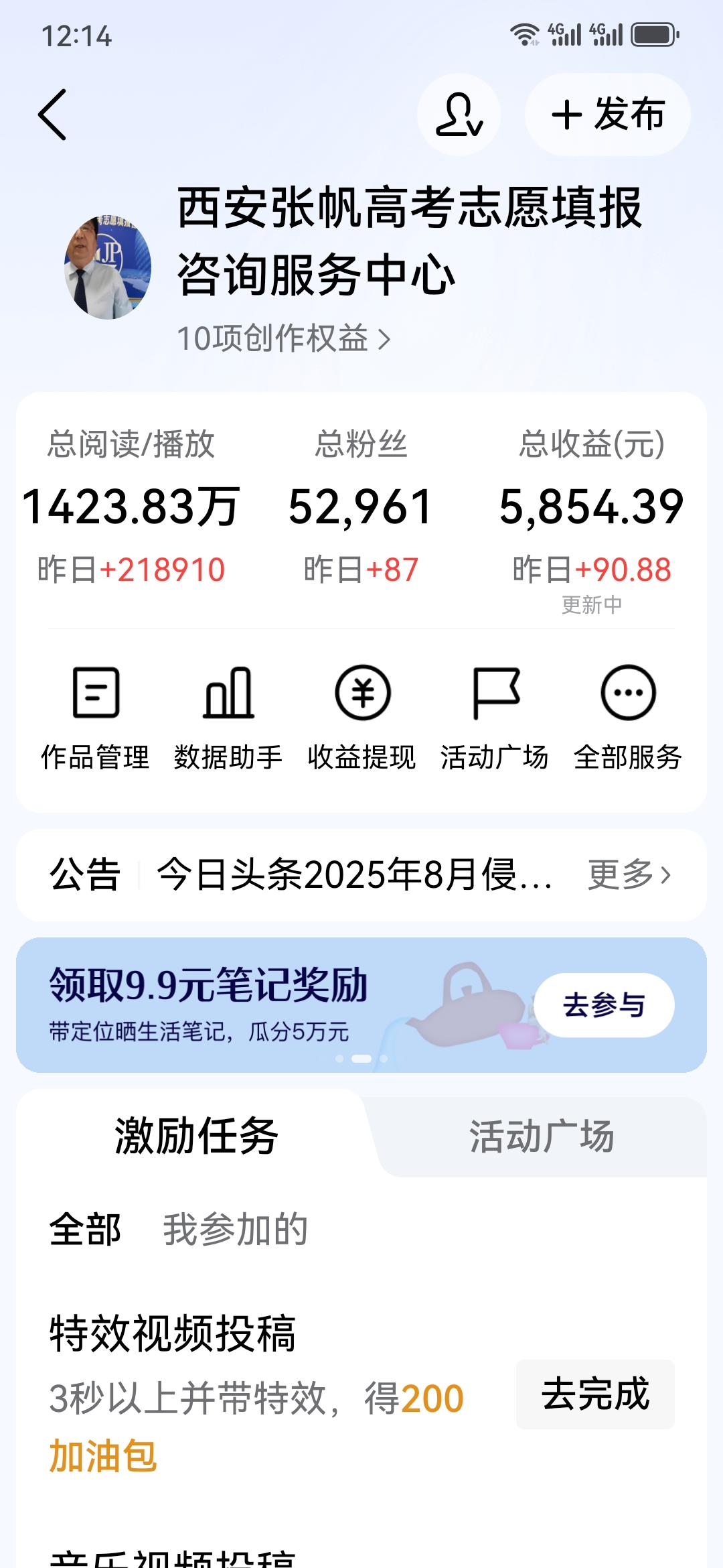 一天在《今日头条》上发布30多篇微头条,将近22万的阅读量,稿费是90多块钱,大