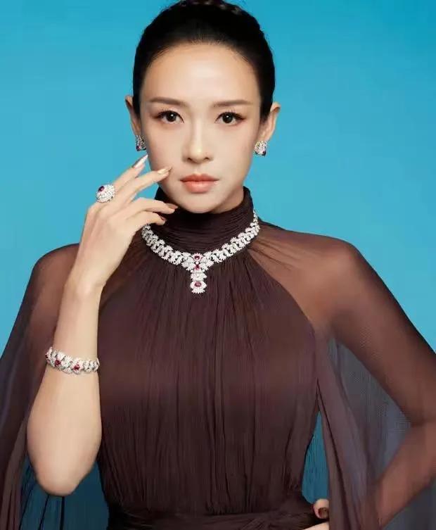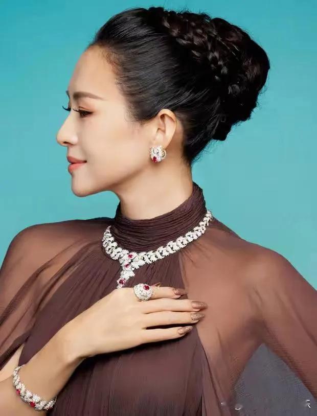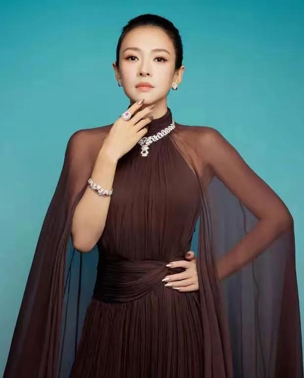 章子怡这套造型真的杀疯了!一身深棕薄纱礼裙自带高级滤镜,披肩式的轻纱设计走路带风,女王气场直接拉满~ 搭配的红宝石钻石珠宝更是点睛之笔,项链、耳环、戒指、手链全套叠戴,在灯光下闪到挪不开眼,把成熟女性的优雅贵气演绎得淋漓尽致。 高盘发露出精致的下颌线和天鹅颈,每一个pose都透着国际影后的底气,这该死的魅力谁能不爱!
