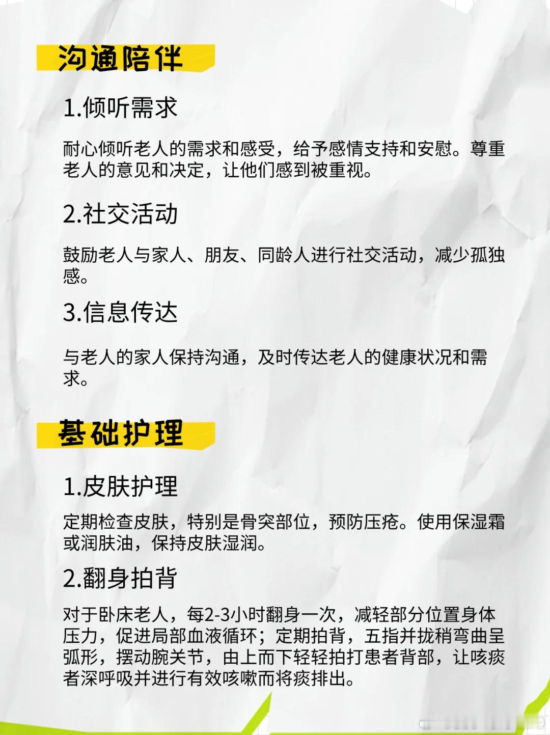 在护理过程中,要学会换位思考,多多倾听老人的意愿,有问题通过积极友好的沟通解决,同时要对老人多些关心和耐心。尊重、爱护老人,才是将这份工作做好的大前提。