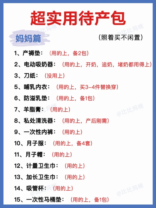 超实用待产包清单!照着买不闲置!不花冤枉钱