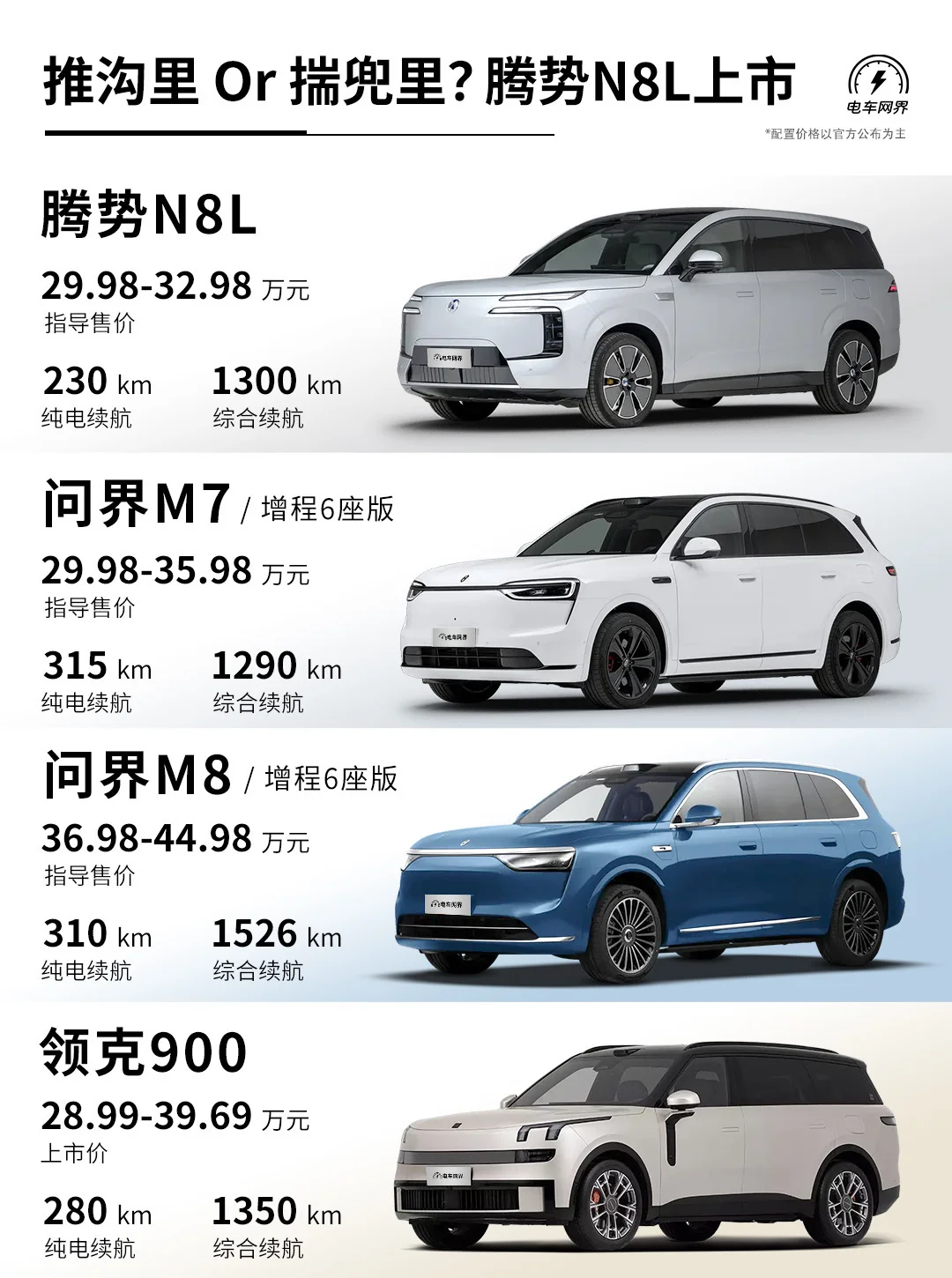 30万左右的定价,让它直接对标问界M7、M8和领克09这样的热门车型。如果是你,这几款家用大六座混动SUV会选谁?