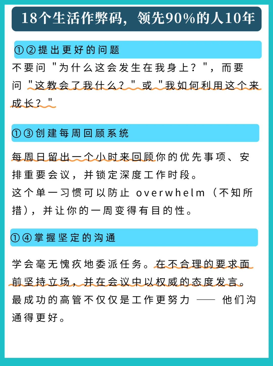 每周日花 1 小时复盘优先级、排关键会议、锁深度工作时段。让一周有目的性。