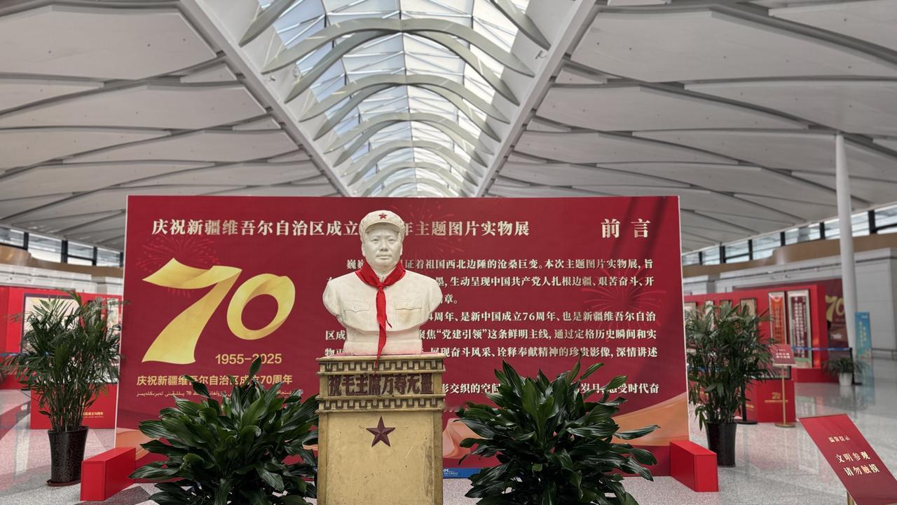 到达新疆乌鲁木齐市,参观新疆维吾尔自治区成立70周年主题图片实物展[大笑][赞]新疆七十周年 新疆70周年庆 乌鲁木齐展厅