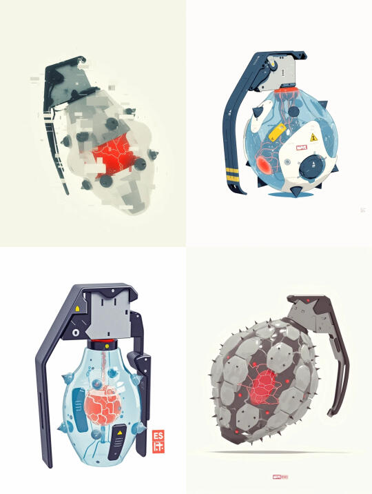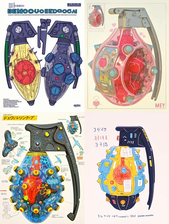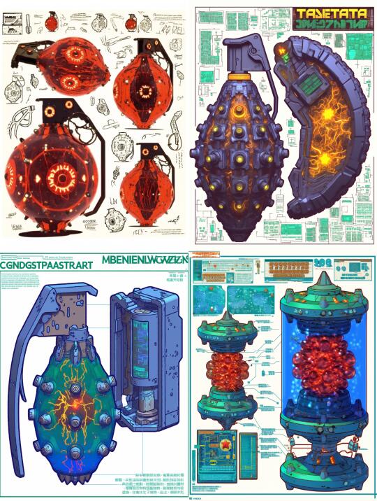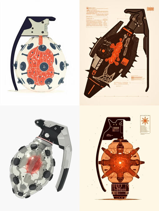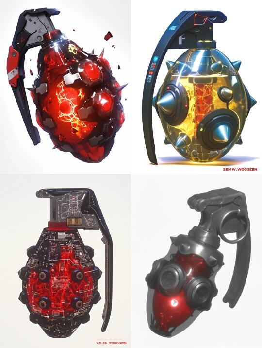今年附近还是不能放鞭炮,用midjourney手搓一箱【生物朋克手雷】 透明外壳里塞入血肉电路,炸出赛博烟花 这玩意儿扔出去,年兽都得喊我声爸! 🤔 问题来了: 这手雷如果量产,你打算用它干啥 [投票]
