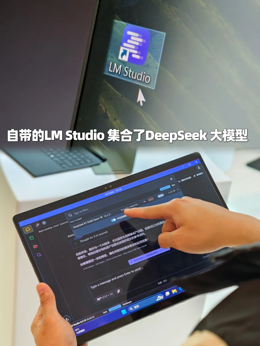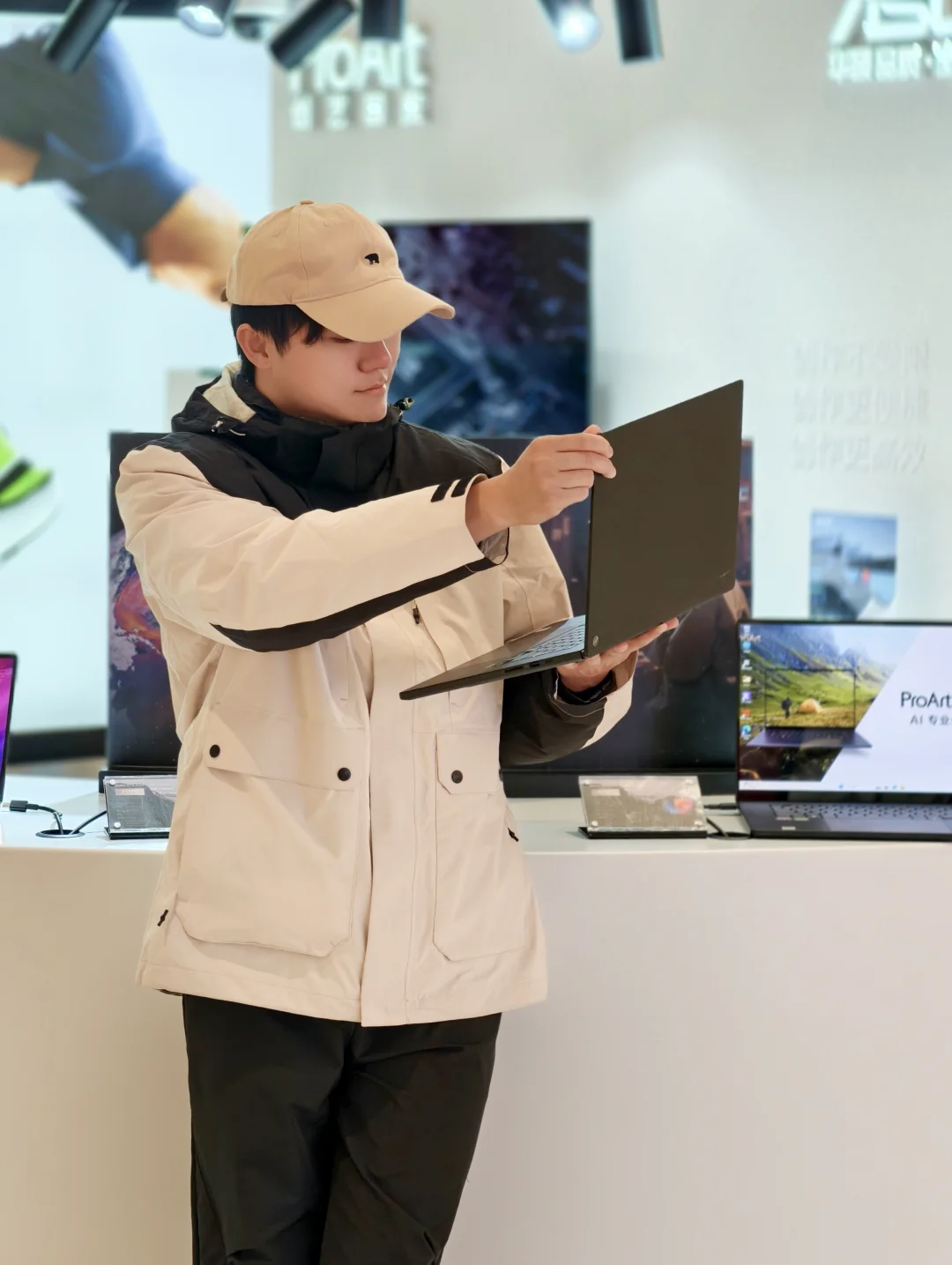 这里体验了ProArt创X,13.3英寸超薄AI PC,薄至9mm,重量仅仅0.85kg,单手托举无压力。支持本地部署版本的DeepSeek大模型,需要去户外拍摄时,在飞机上直接让它生成拍摄脚本和攻略,落地就能直接开拍📸