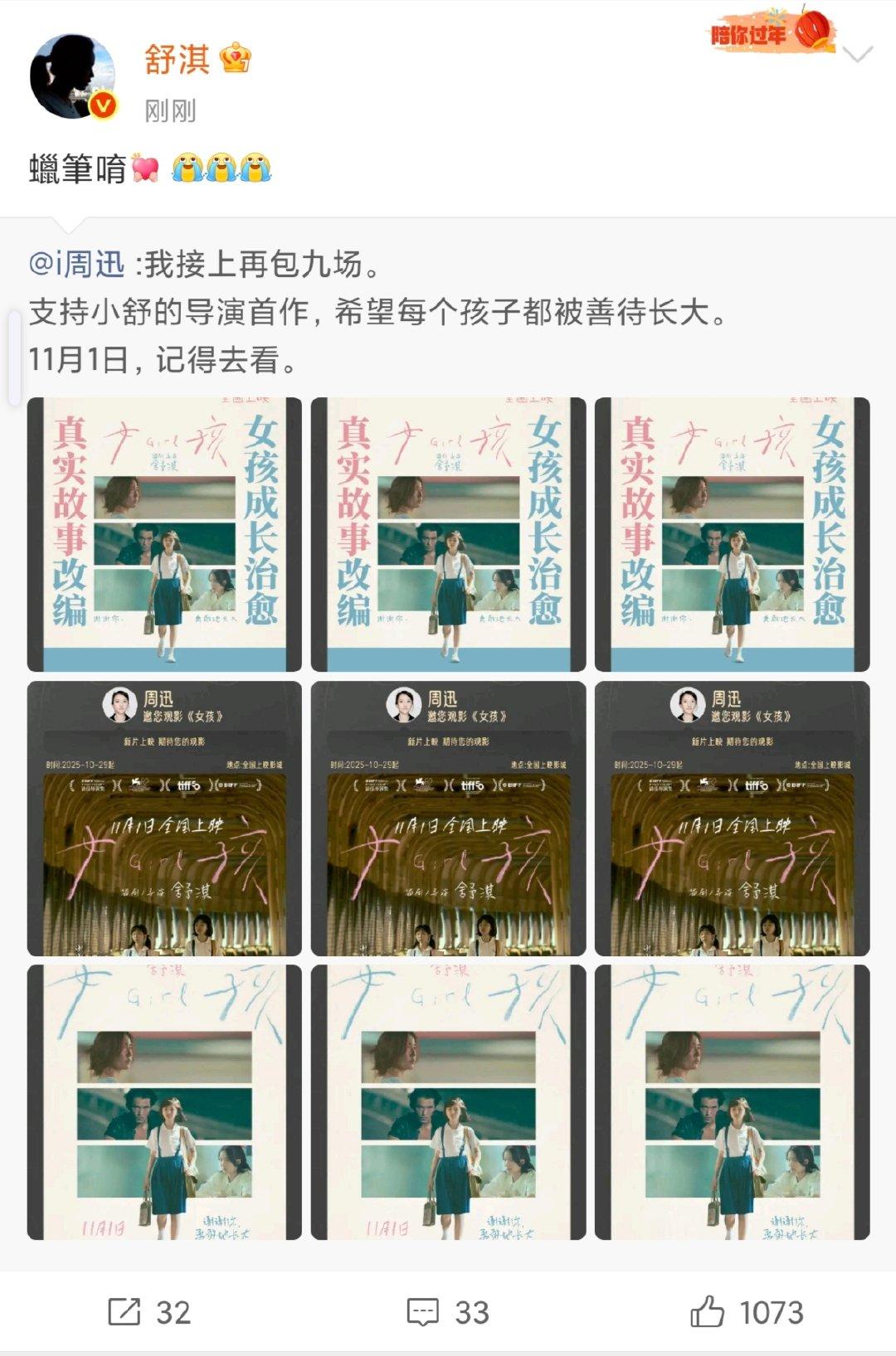 舒淇回应包场舒淇发博回应包场 看出来几个人关系很好啊,这是什么神仙友谊!