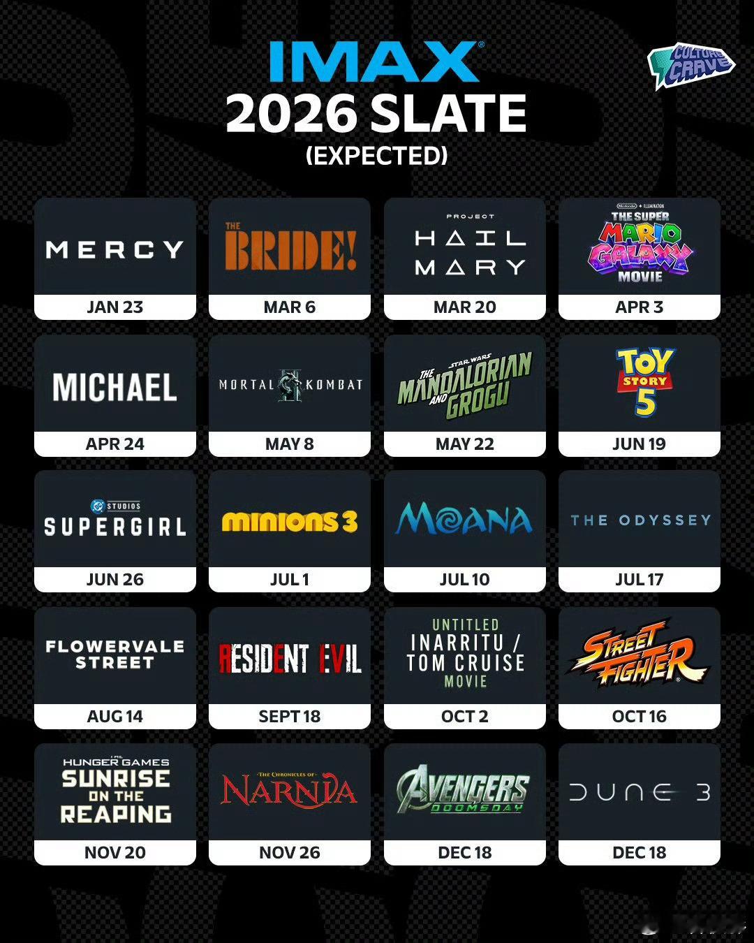 [心]明年IMAX影院上映影片北美档期一览[憧憬][色][舔屏]!!《阿凡达3》和诺兰新片《奥德赛》都能霸占长达一个月!且后面很长时间都没有对手,可以霸占更久!也导致《蜘蛛侠:崭新之日》没有IMAX场次。而同天上映的《复仇者联盟5》和《沙丘3》则要为抢IMAX撕得头破血流……
