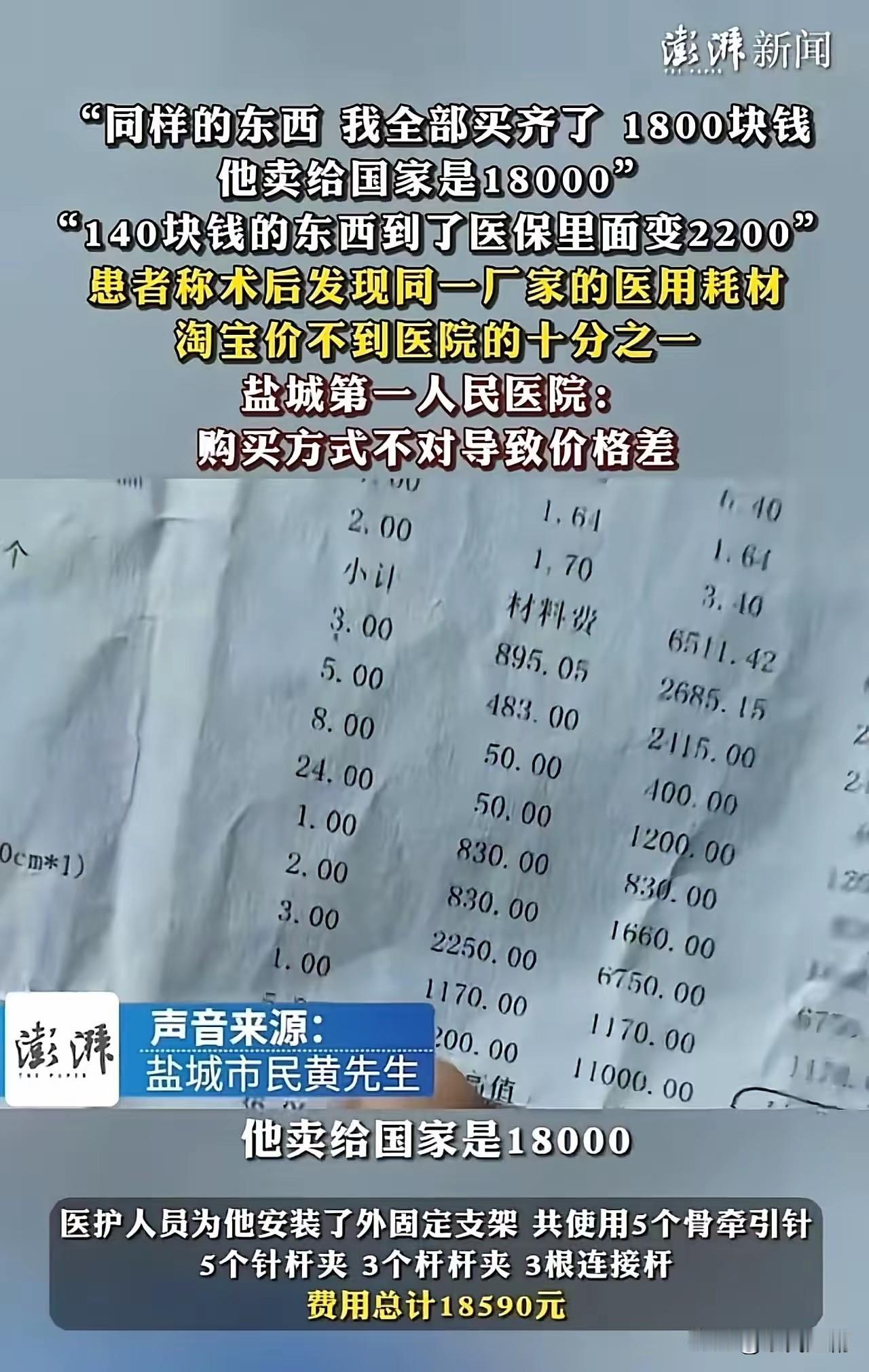 这件事情在网络上引发了广泛关注与热议,也再度引发人们对医疗行业腐败和制度漏洞的忧虑。在江苏盐城,一名男子手术出院后,出于好奇在网上查询自己所用耗材价格,竟发现同一厂家生产的医疗耗材,在不同渠道的价格相差如此之大。男子在网上购买只需1800元,而医院或相关机构卖给国家的价格却高达18000元!这一鲜明对比令网友们大为震惊,也引发了对医疗行业潜规则的质疑。 这件事反映出一些令人忧心的现象。首先,医疗耗材价格虚高问题始终是公众关注的重点。由于缺乏透明的价格体系,某些医院或中间环节或许存在“加价”行径,致使国家采购价格远高于市场价。这不仅浪费了大量公共资金,还加重了医保负担。更让人气愤的是,患者即便经过医保报销,实际自付部分依然不少。许多网友质疑:“合着医保报销后,自己花的钱还是那么多?”这让人感到不公,也激发了公众对制度改革的强烈呼声。 此外,部分网友还指出,医院和相关供应链可能存在利益输送、暗箱操作等问题。一些医院为追求利益最大化,可能会在采购过程中谋取私利,导致医疗成本虚高。公众对医疗行业的信任度因此受损,也对医疗制度的公平性提出了质疑。很多人期望相关部门加强监管,推动医疗价格透明化与公开化,压缩中间环节的利润空间,让患者真正享受到合理、公正的医疗服务。 这件事情也提醒我们,医疗行业的腐败问题不容忽视。近年来,国家不断加强对医疗行业的整顿与监管,推进医疗价格改革,但仍有诸多问题亟待解决。公众的关注与监督,是推动制度改善的重要力量。除制度层面的改革外,公众也应增强自身维权意识,善于运用法律和政策维护自身权益。 同时,这也凸显了信息不对称带来的问题。患者很难知晓医疗耗材的真实价格,也难以判断医院收费是否合理。未来,建立完善的医疗价格信息公开平台,让患者可随时查询相关信息,将有助于遏制价格虚高和不合理收费现象。 总之,这起事件虽是个案,却折射出整个医疗行业存在的深层次问题。公众期待相关部门强化监管,推动价格透明,让医保资金使用更合理、高效。只有完善制度并借助公众的共同监督,才能让医疗行业迈向更健康、公正的未来。希望类似事情不再发生,让每个患者都能在公平、透明的环境中获得应有的医疗服务。