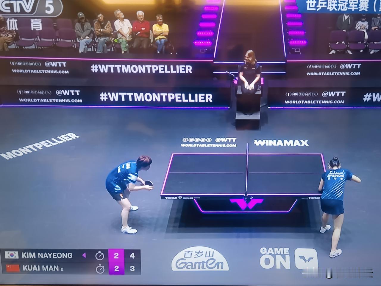 蒯曼出局!世乒联冠军赛蒙彼利埃站,中国小将蒯曼2:3不敌韩国金娜英,止步第一轮! 这是继中国乒乓球名将陈幸同止步第一轮以后,蒯曼又出局了!看来没有孙颖莎和王曼玉压阵。中国乒乓球真是不行!蒯曼这样的状态,真是不可思议,感觉就是三流选手,感觉就是不会打球,球根本斗不过网,难道没有主力队员压阵,心态失衡了吗?如果是这样,那真是挑不起大梁,不可重用!