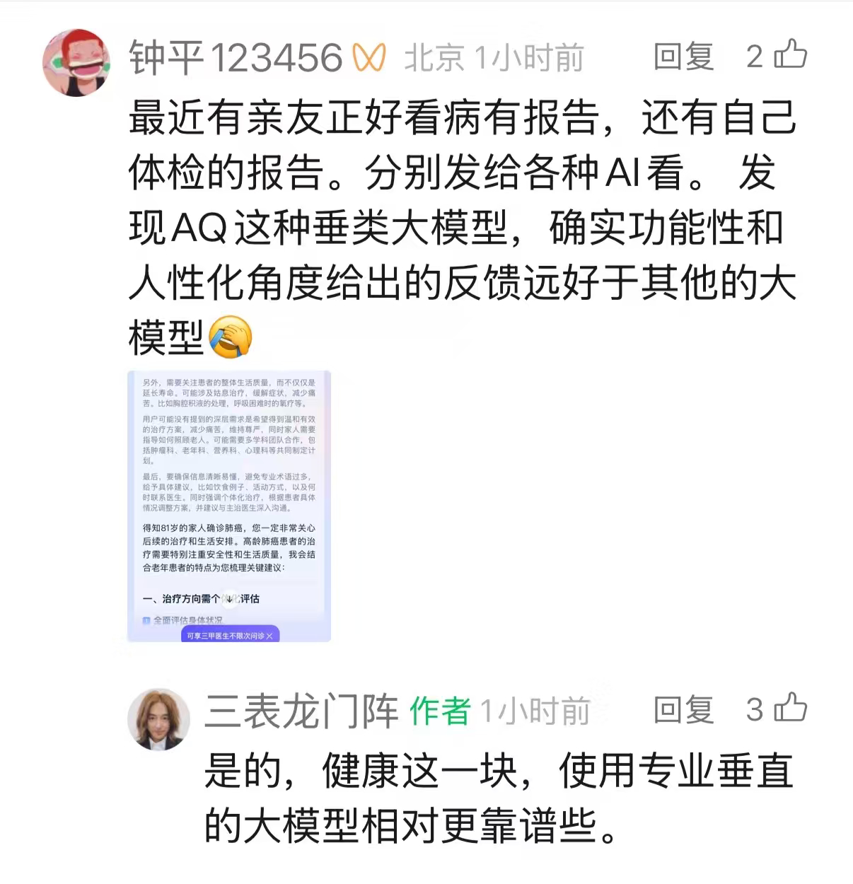 AI的出现是解决了很大难题的,因为子女也不是专业医生,更多的还是要靠检查,但健康相关AI的出现,让问诊变的方便的多,只要描述的足够详细,它就能做出相对准确的判断,并给出专业的建议,即便子女不在身边,也能更好的去关注老人,在健康问题出现的第一时间得到解决方案。