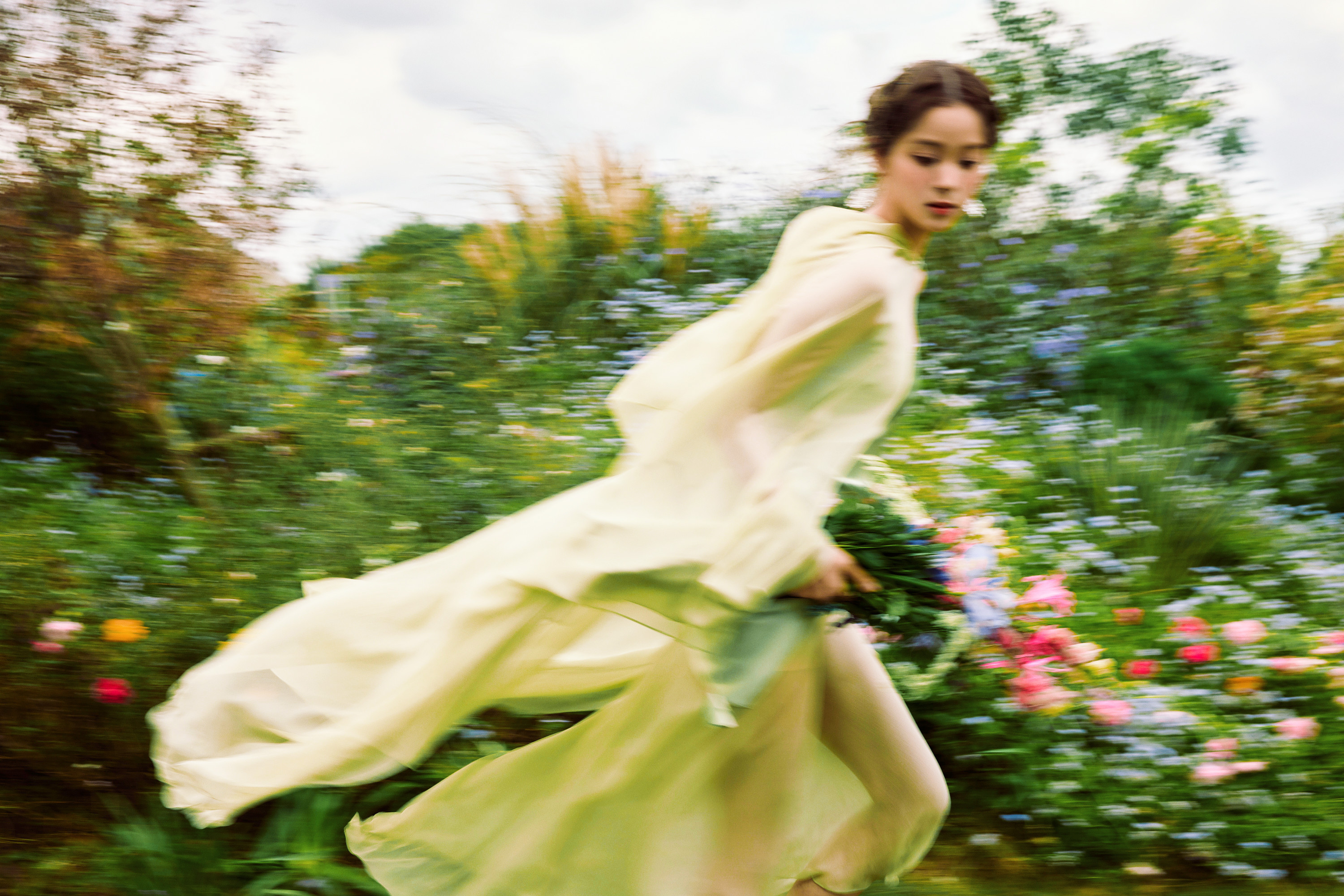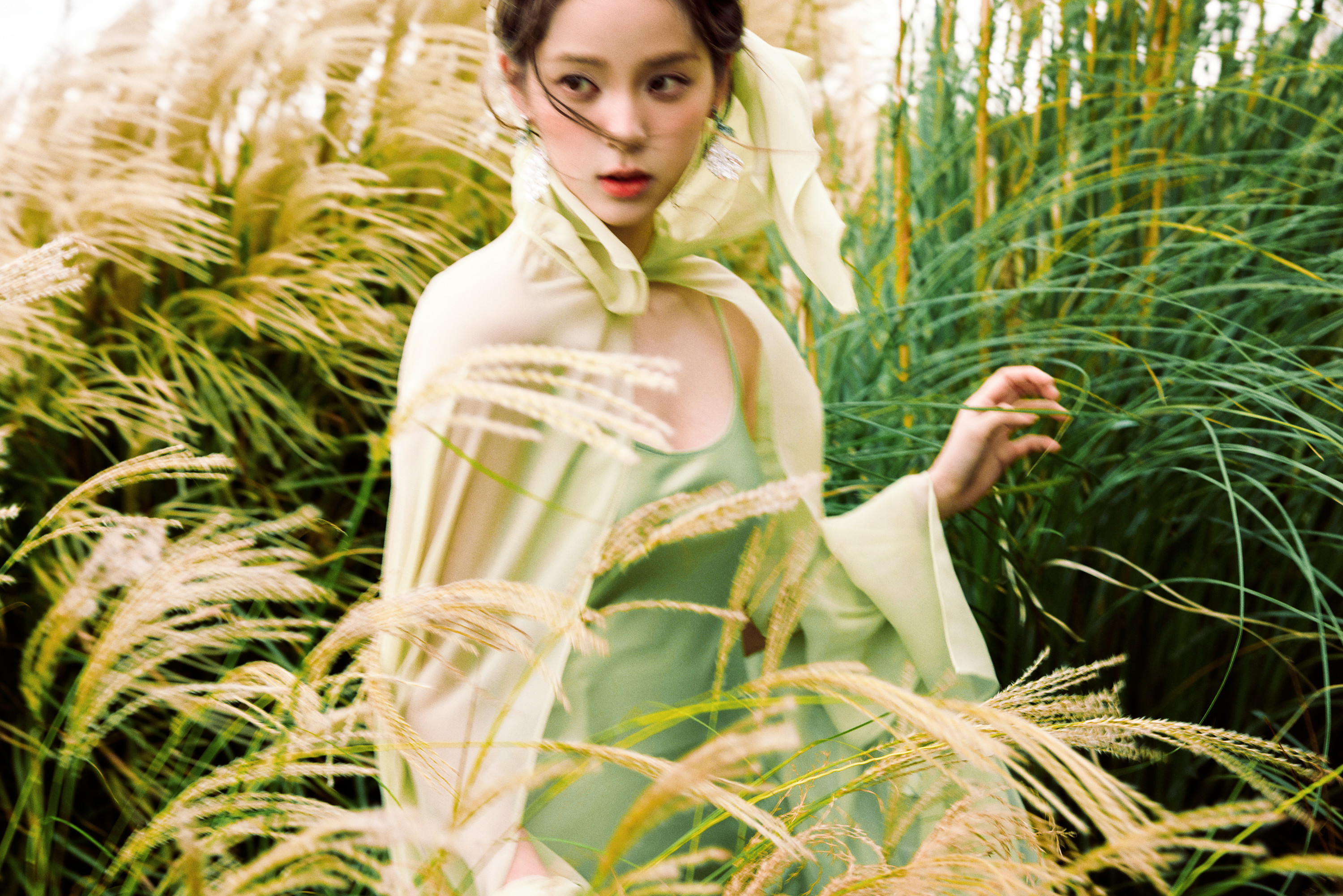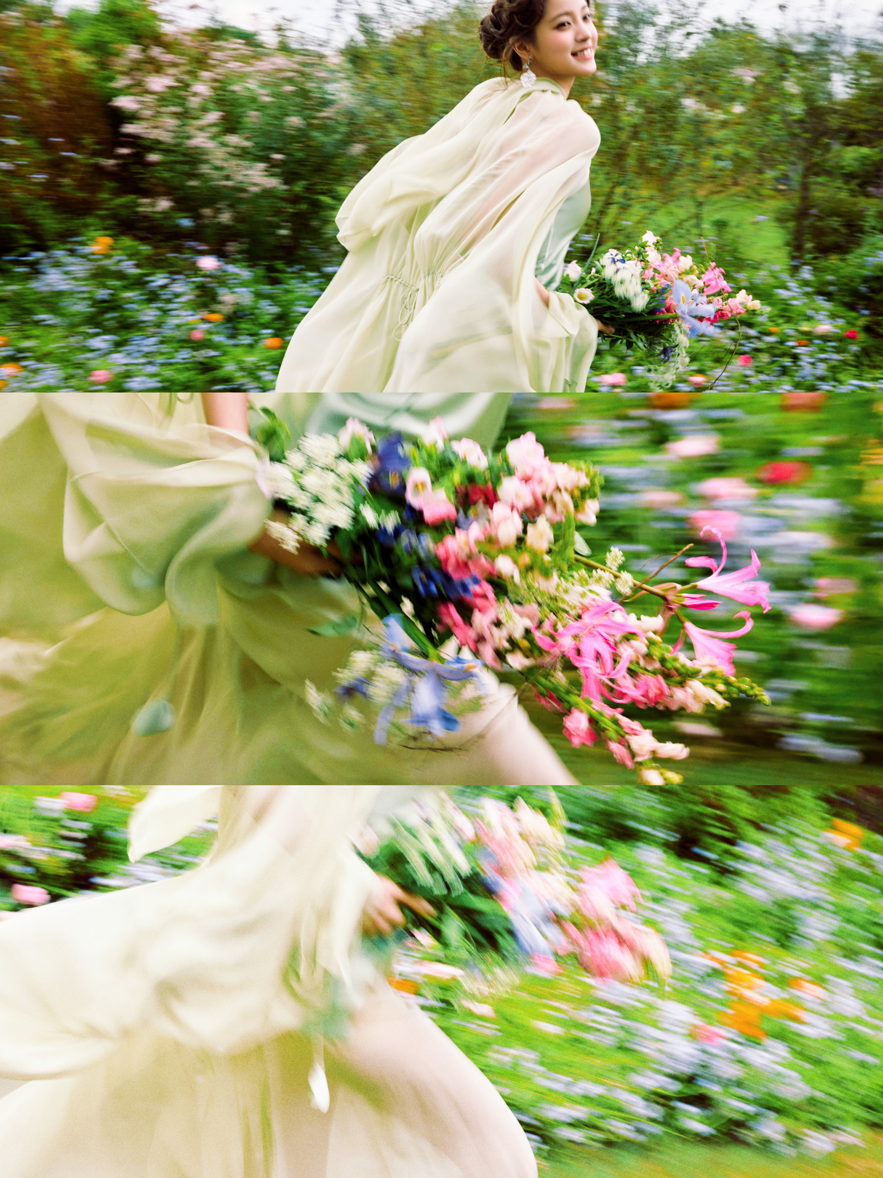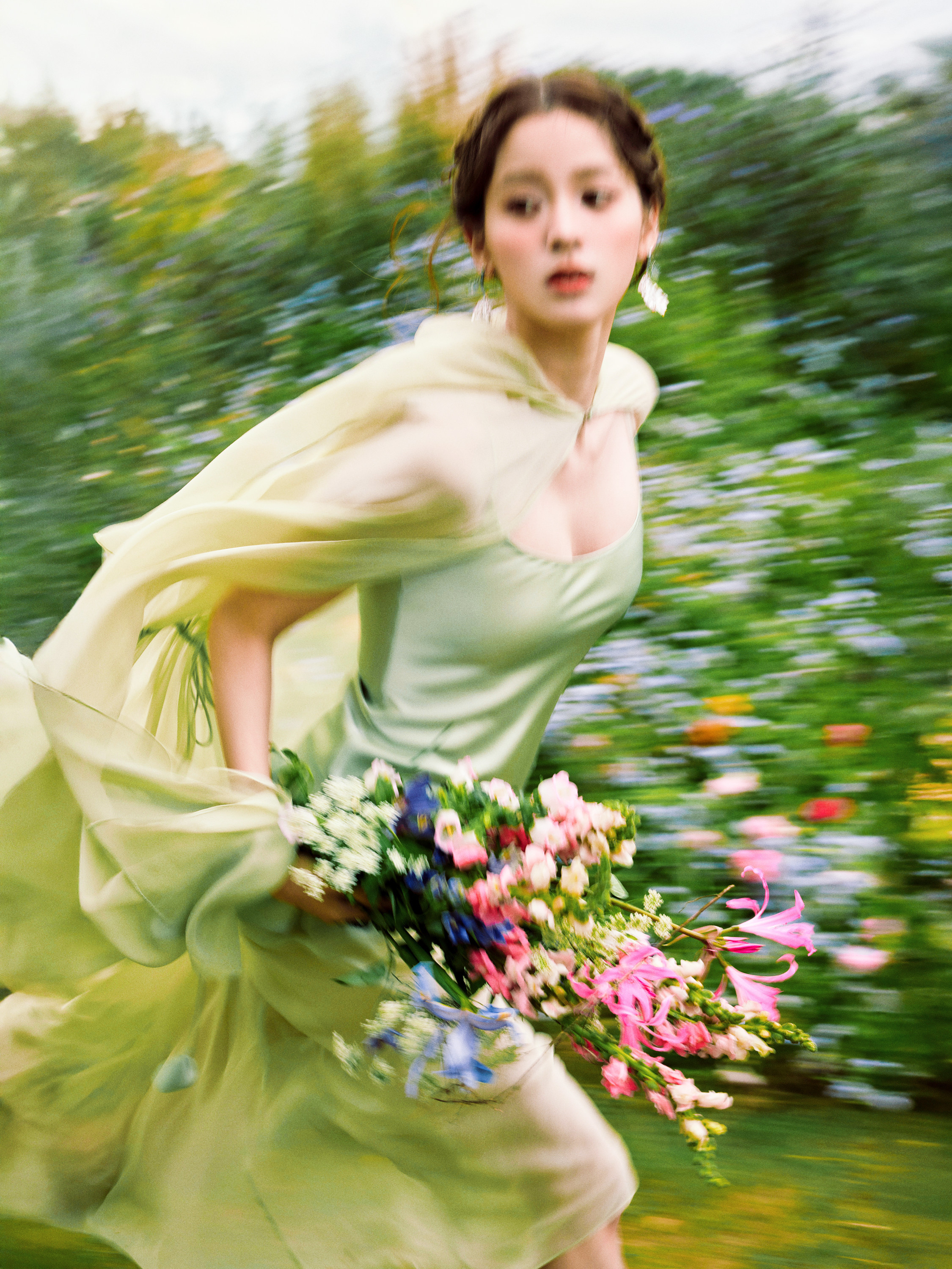 这绝对是欧阳娜娜的高光时刻,美出天际。欧阳娜娜衣着绿薄纱肆意在花丛中奔跑,仿佛是