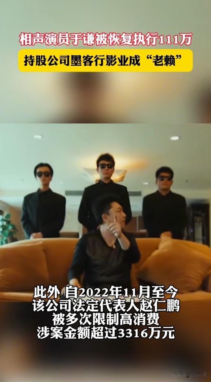 有媒体报道 于谦被恢复执行111万 可网友们看完新闻非但没同情他,反而在评论区讨论他们家的亲戚。 原来被执行公司叫墨客行影业,注册资本1000万,于谦占10%,出资100万。这个公司性质是有限公司,赔钱欠债了也只是用公司钱还就行了。 可现在公司股份冻结了,作为股东的于谦也是受害人,执行不了人家啊就算破产清算。有限公司,注册资金就是偿付上限,就算公司没有任何资产了,于谦也就按持股比例拿钱还账,如果已经实缴,那赔光就行了。 这个新闻就是典型的标题党,写于谦的名字就是为了蹭流量,吸引观众的眼球,和我这开头一样的套路。 明显是于谦吃亏了,可网友们非但没同情,反而在评论区看起来笑话。 有网友说:“人家于谦是什么人啊,祖上是满清八大铁帽子王,正黑旗的绿帽子王。老丈人是蒙古国的海军司令,他爸是个武术家,他媳妇是公主”。 还有网友说:“于老师爷俩拿铁锹在美国挖运河挣了老鼻子钱了,这些小钱对他来说就毛毛雨”! “谁敢要谦儿哥的钱,他爸可是少林寺驻武当山大神父王喇嘛的徒弟,人送外号天下第一瓢客,又称朝鲜冷面杀手”。 好家伙,不看评论区不知道,原来于谦老师家世显赫,怪不得郭德纲都让着他三分,有这么多有实力的亲戚撑腰,怕谁呀。 大家说说如果于谦真的破产了,老郭会不会伸手帮一把?