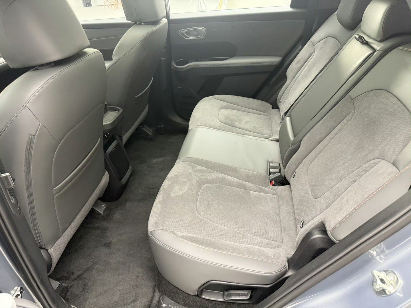5、内饰用料我觉得是北京现代很考究的一点,采用大面积皮质与仿麂皮结合的超纤绒材质,首先就是视觉上的高级感得到了满足。当你触摸的时候,这种高级感自然就被提升了,情绪价值也就出来了。我特别喜欢右腿依靠的地方也采用了软性材质,人性化非常不错;
