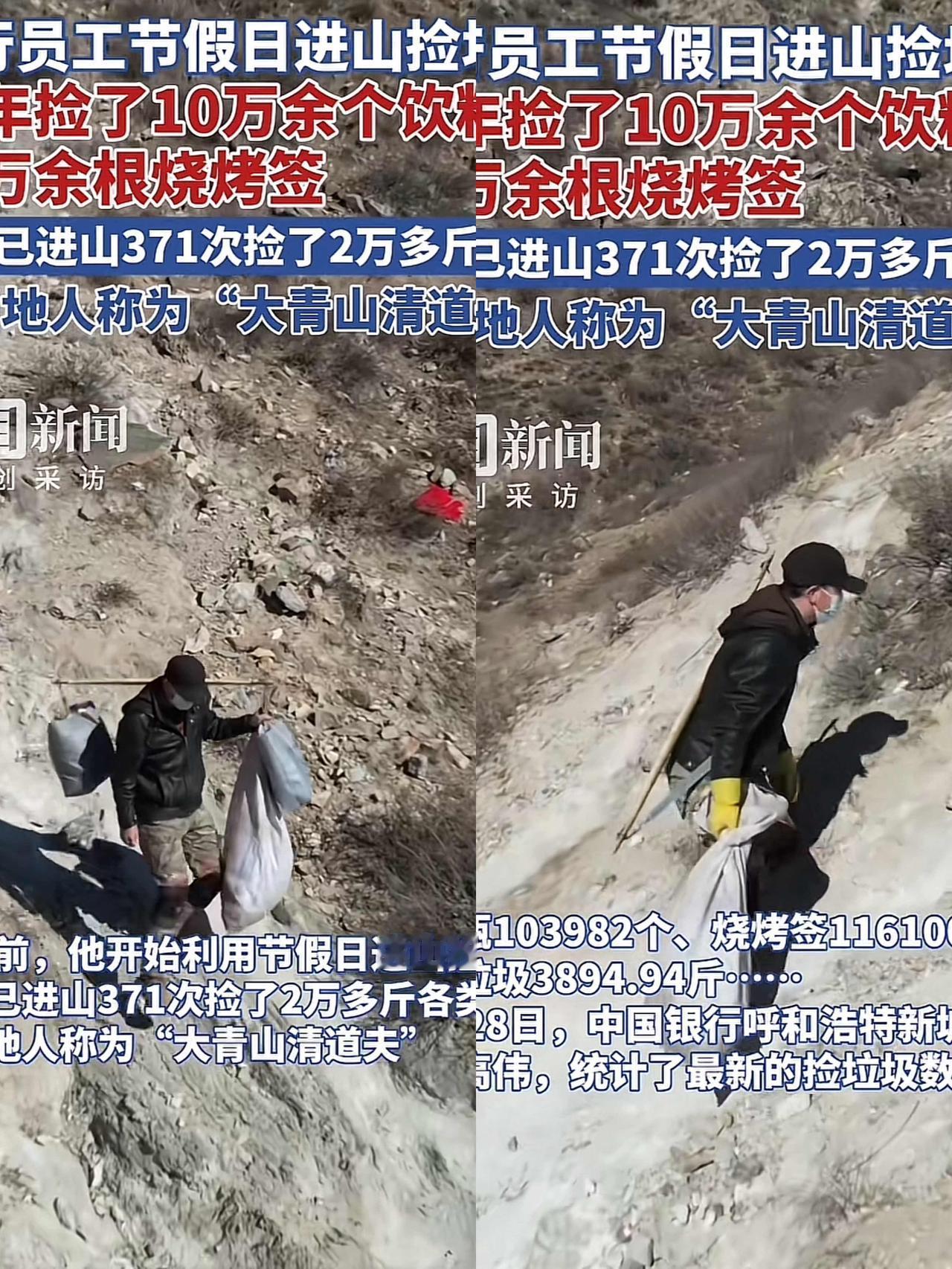 这下好了! 全国人民都知道了! 内蒙古某银行员工高伟,十年来利用节假日进山捡垃圾371次。 别觉得捡垃圾是小事,他一捡就是十年,节假日雷打不动进山371次,还专门记着“环保账本”,每年定个捡一万个瓶子或烧烤签的小目标,现在已经清走两万多斤垃圾了。 更难得的是,他把卖垃圾的8000多块全捐了,这钱没多少,但每一分都是弯腰弯出来的心意,比那些只会喊环保口号的人实在多了! 最让我感动的是他妻子,从一开始反对到后来陪着一起捡,这份支持才让这份坚持更有温度。 高伟哪是什么普通人,他就是用行动做事的“平民英雄”,这种不喊大口号、默默干实事的劲儿,才该让更多人看见! 他呼吁大家一起捡垃圾,令人敬佩!你还有什么坚持不懈的精神吗?