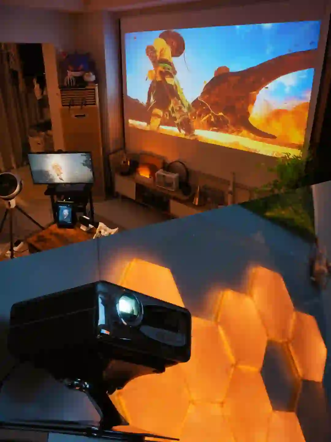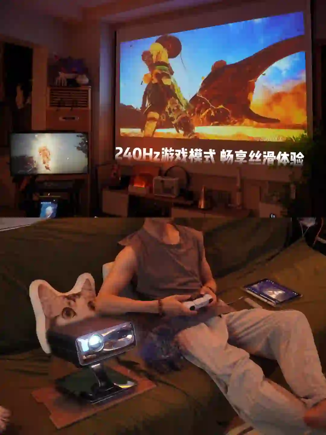 🎞️因为是租房,比起大电视,还得投影仪更方便,幕布一拉,不论什么位置,都能尽情享受大屏打游戏的快乐!