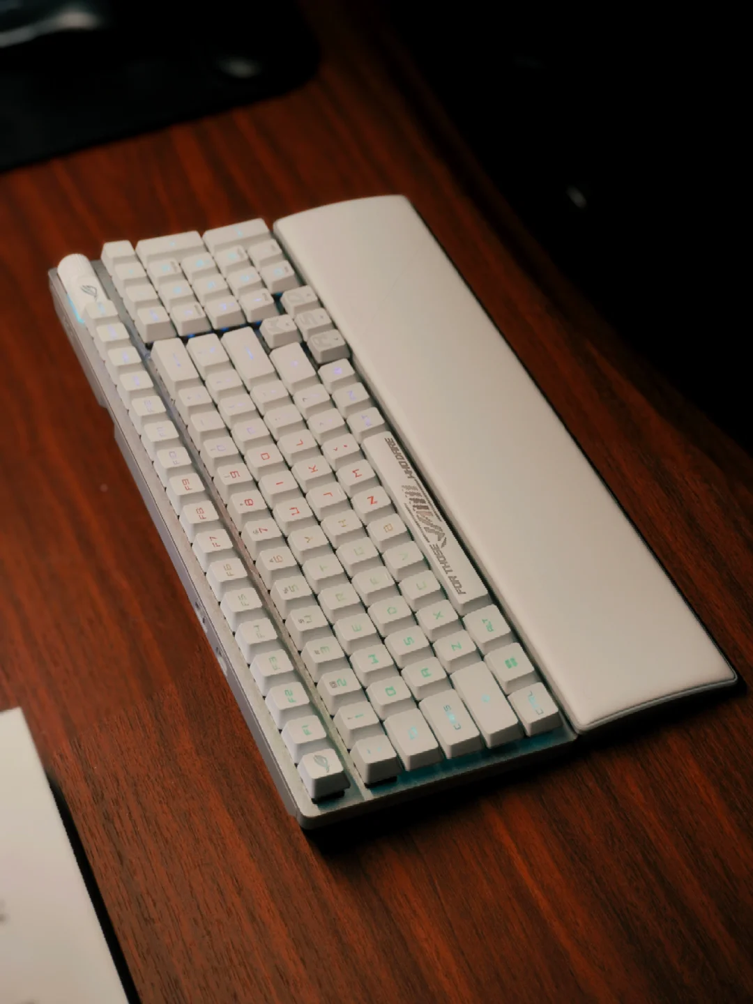 ⌨️刚好也是搭配白色的无线键盘,这个轴体还有一点不一样,ROG RX光学轴体整体按压都是比较顺畅,日常码子工作听感没有杂音比较悦耳,应该是得益于双层硅胶吸音棉结构,而且自带的无线链接回报加速器日常打游戏更灵敏,搭配游侠2RX98还有的奥创极速版独立驱动更是爽快。