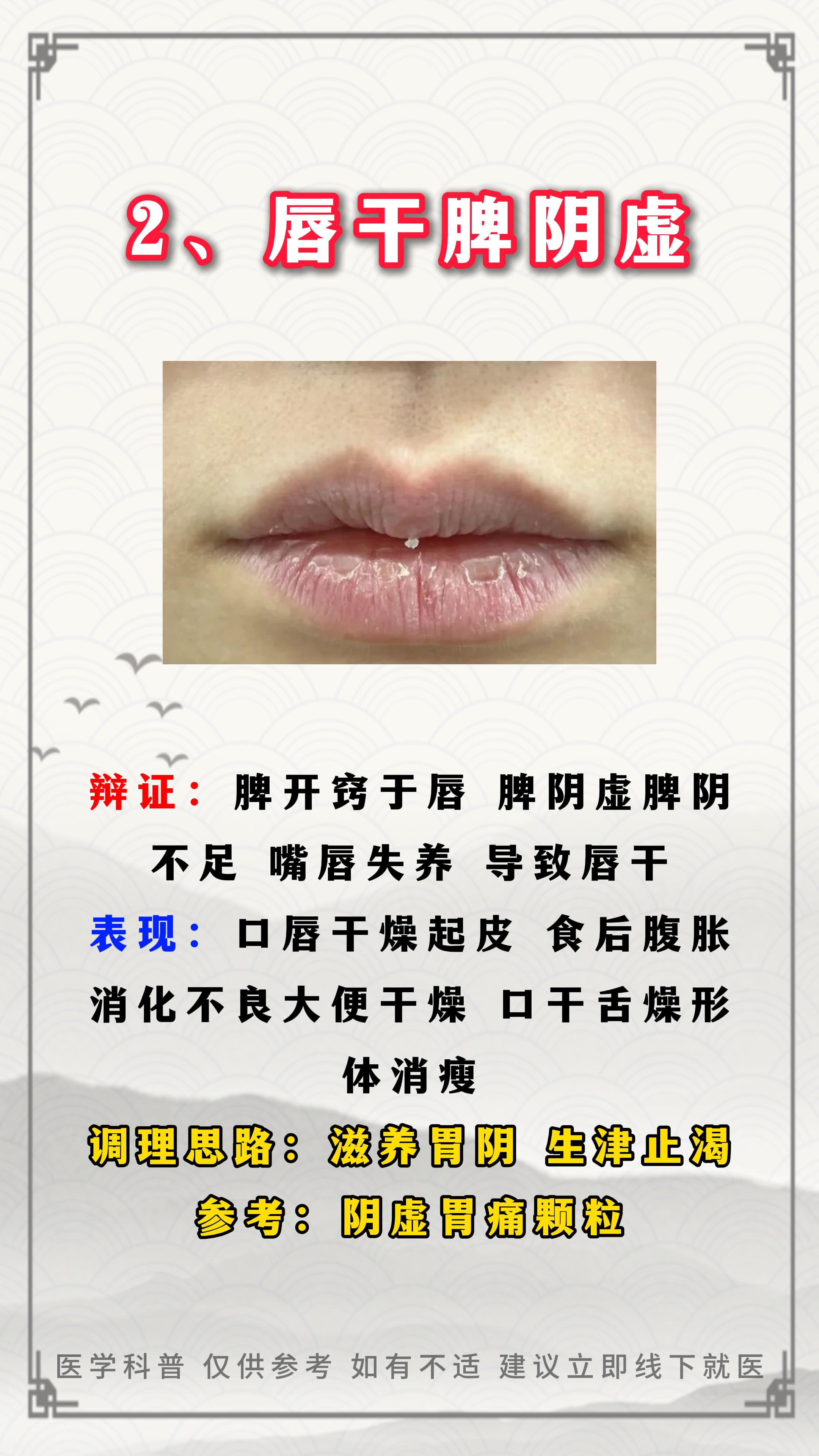 鼻干肺阴虚,唇干脾阴虚。