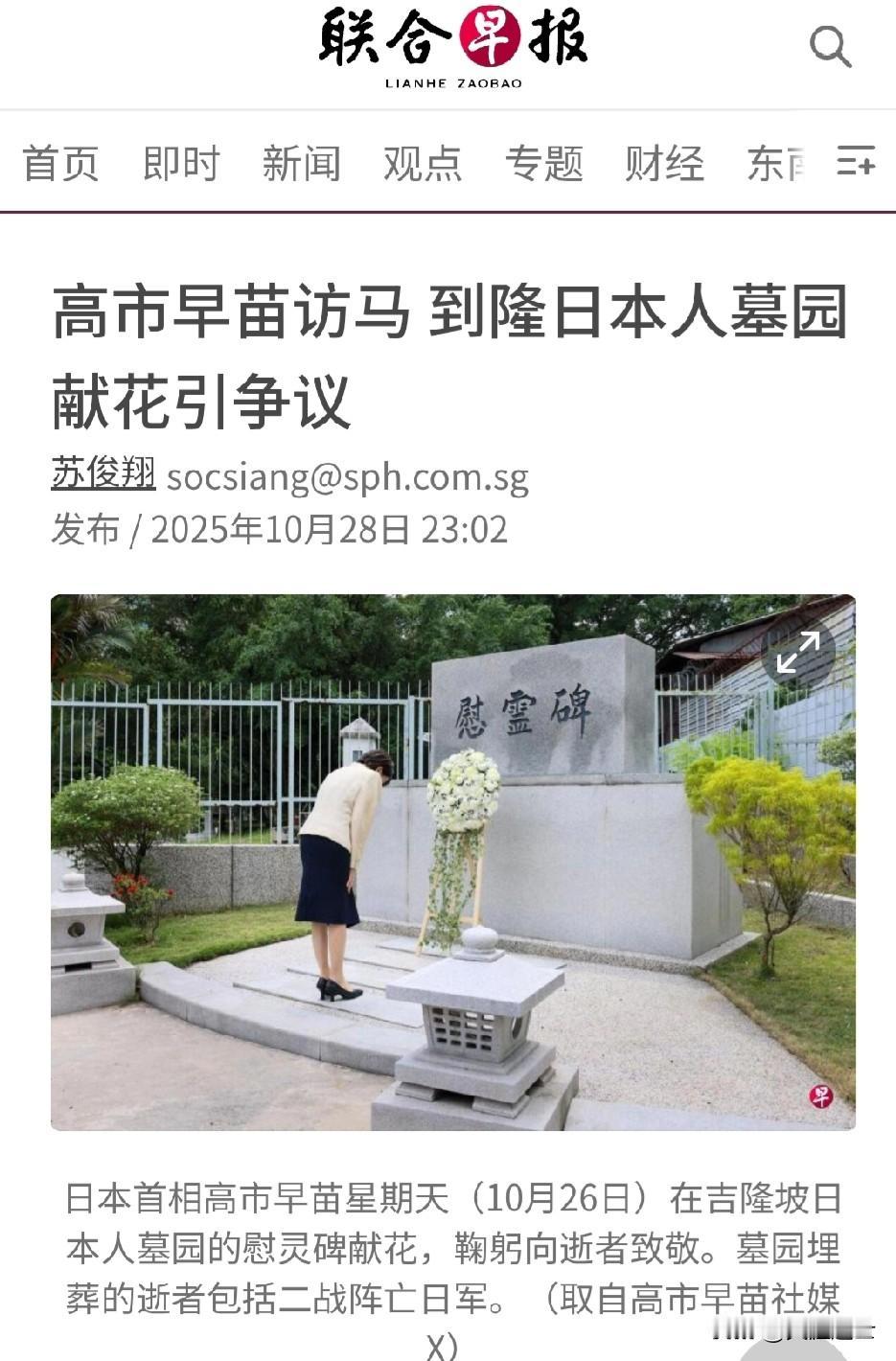 我才知道马来西亚官方层面竟然没有庆祝反法西斯胜利纪念日活动! 前几天日本女首相高市早苗访问马来西亚,竟然去当地的日本人墓园献花!这座日本人墓园有过百年历史,埋葬了在马来半岛去世的日本人,包括二战时侵略马来亚的阵亡日军,可见其心不正。马来西亚政府说这是既定行程,并无不妥,但马来西亚国人却纷纷议论高市早苗没有对日据时期的大屠杀与性暴力等暴行道歉,还有人指责献花其实是包装与美化这些暴行。 我又查了查历史资料,原来马来西亚官方这种作为与其多民族有关,内部的马来族和印度族对日本观感不一,而我们华人是最厌恶日本人的,因为当时日本占据马来西亚期间采取了分化政策,拉拢了当地土著民族,主要针对的就是我们华人。
