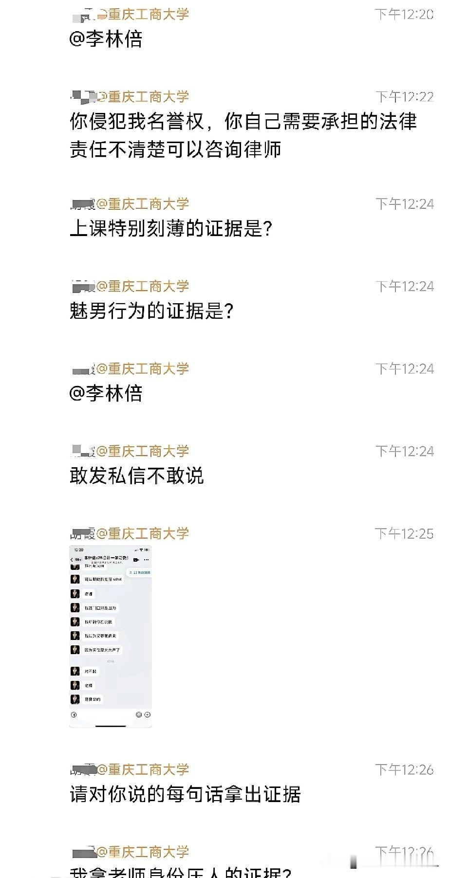 真是大快人心! 重庆工商大学一新生因回答不上老师提问,就把法学女老师挂到微博上,造谣说女老师上课刻薄媚男。没想到女老师后来直接怼了回去,说要用法律手段维护自己的合法权益。 此事是发生在重庆工商大学的一件事情。一名女生自己上法学课时,法学女老师提问她几个问题,她回答不上,于是就把法学女老师挂到微博上,说女老师上课刻薄媚男,喜欢对男生提问,不喜欢女生。 没想到的是女老师看到后,直接霸气回怼,表示要用法律手段维护自己的合法权益。而且通知中写道:某同学在某社交平台发言攻击我,诽谤我,上课喜欢男生不喜欢女生,我从教这么多年,严谨治学,平等对待每一位同学,言论不攻自破,但作为教师,我有义务也有必要维护自己,维护老师的合法权益。这条通知一出,那位造谣的女同学吓得连忙在群里道歉,但女老师并没有接受。 此事到这里也算是画上了句号,但是我还是想说,做任何事情都要有个度,你这不是回答不上老师提问,就造谣人家刻薄媚男,这不是找不自在吗?