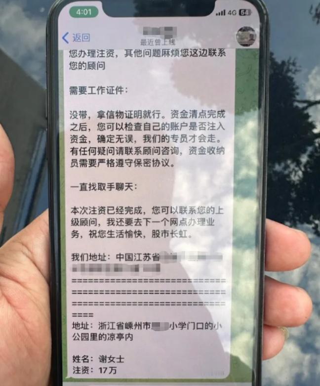 母亲取现投资 儿子紧急报警 民警赶到后将计就计 成功抓获一名“取现车手” “警察同志,我妈可能被骗了!” 近日 嵊州市公安局反诈中心监测发现 市民谢女士从银行取现20万元 疑似遭遇电信网络诈骗 与此同时 谢女士的儿子向警方报案 称其母亲近期在网上参与投资 担心陷入骗局 剡湖派出所民警立即上门 开展劝阻工作 据了解 谢女士一个月前在网上 结识了一名“投资老师” 对方声称可带她炒股赚钱 谢女士进行小额投资后 账户果然收入上万元 这让她深信不疑 于是在对方诱导下 准备追加投入17万元 于是民警准备将其带往派出所 进一步劝导 此时“投资老师”突然联系谢女士 称下午会有一名 “工作人员” 上门收取“投资款” 并充值到谢女士的“账户”中 民警立即将情况上报反诈中心 “今天下午4点 在某小学门口的公园凉亭内交易!” 得知这一关键信息 嵊州市公安局刑侦大队 立即组织警力开展研判部署 谢女士则在民警的指导下 继续与对方周旋 确认了具体的交接时间与地点 “目标人物出现!” 侦查人员提前来到 交易地点附近蹲守 没多久一名身穿白衬衣、黑裤子 形迹可疑的男子进入视野 民警在确保学校安全的前提下 果断出击 将这名“取钱车手”当场抓获 据嫌疑人交代 他在网上找到一份“跑腿”工作 对方要求他前往指定地点 收取“投资款” 并承诺给予他丰厚报酬 没想到还未见到谢女士 就被警方抓获 目前 该男子已被公安机关依法行政拘留 案件正在进一步侦办中 对素未谋面 却提及投资理财的网友 要保持警惕 广大群众应通过 正规金融机构进行理财投资 切勿轻信“稳赚不赔”的“内部消息” 如遇可疑情况 请立即拨打110举报