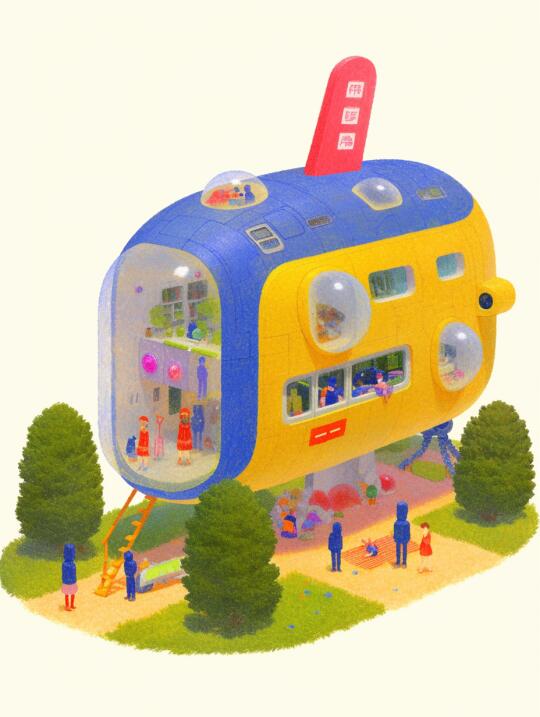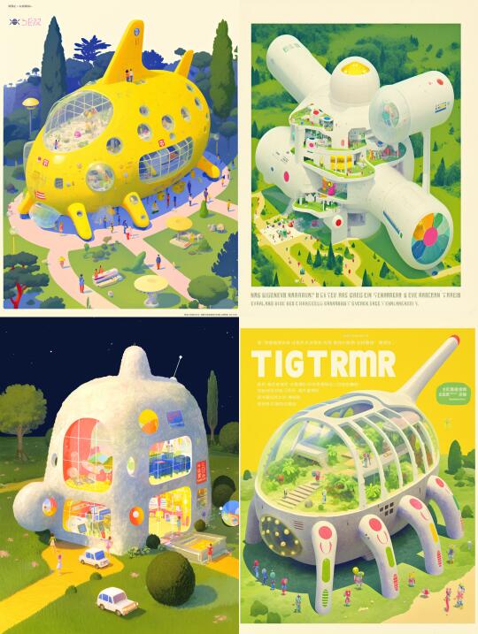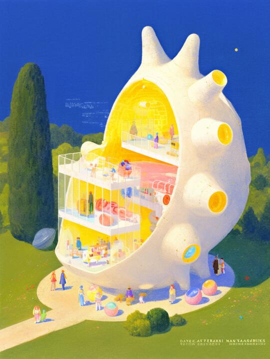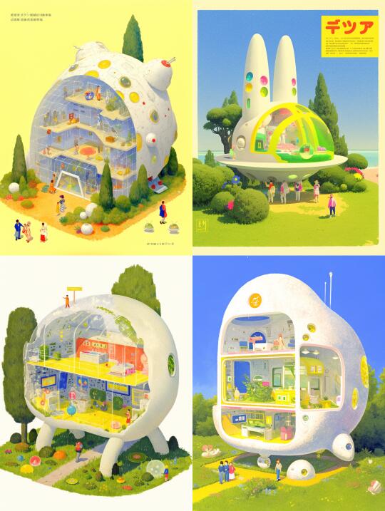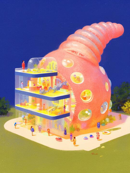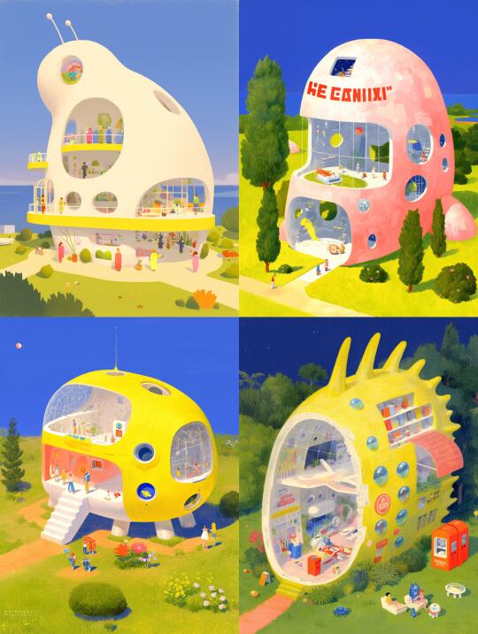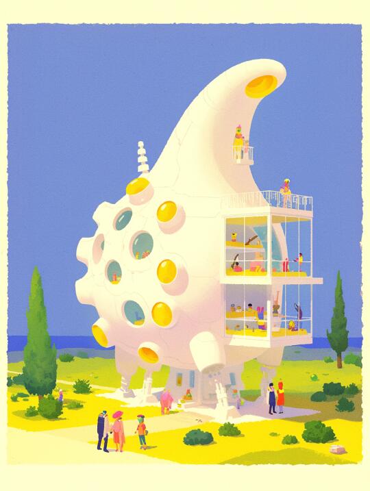 圆润的大块面造型 厚实坚固的外壁 巨大透明胶质舷窗 未来科技建筑新形态