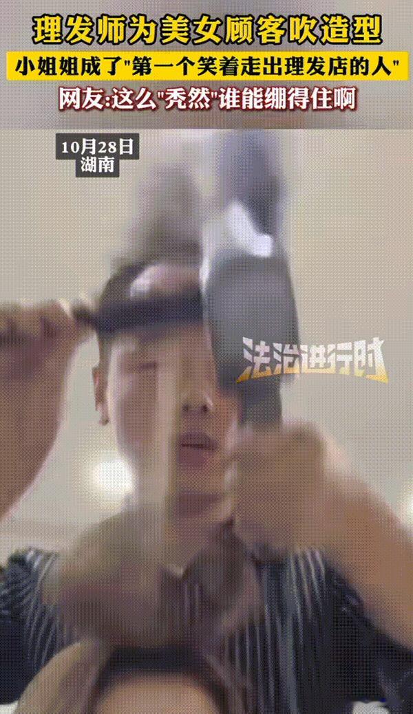 笑不活了!湖南,当理发师为美女顾客吹造型时,突然不小心吹风机吹到了自己的头。没想到下一秒直接让美女顾客笑出了魔性的笑声,因为他把自己的假发给吹掉了。突然理解了那句话“发型是一个男人最好的医美”!网友:第一位笑着走出理发店的人! 美女来理发店洗头,当洗完头之后,店里理发师就问:美女对我们的服务是否满意呀!因为美女来那会店长在忙,是学徒给洗的,所以服务不是那么的好。 该吹造型的时候,店长就来了。当该吹刘海的时候,需要用吹风机好好吹一番。于是店长就先用梳子卷起了头发,然后拿着吹风机各种角度来吹。可是一不小心转变方向的时候,把吹风机口对准了自己的头。 下一秒自己的假发直接被吹飞了,这一幕刚好让美女顾客看了个全过程。一下子没绷住,直接哈哈哈哈大笑了几声。于是对着店长说:哇塞,帅哥你还有这一面呀! 这多帅呀,还需要戴假发吗?我看你们是为了让顾客笑着走出店,也真是煞费苦心了。不过你看女子那样是真的笑的不行了,完全不顾个人形象张着大嘴才笑呢。 瞬间25岁一下子变成了52岁,想必女生在想来时想:帅哥洗个头,走的时候说:叔我走了!也不怪女子会笑成这样,这么“秃然”谁能绷得住呀! 我想店长心里肯定是尴尬死了,他绝对在想你也太不礼貌了,我确实不是故意的,我也不想这样的,反正就是挺突然。我想这个理发店女子以后肯定会经常去,因为给她带来了很多的欢乐。 对于这件事情,大家有什么看法? 信息来源:法治进行时