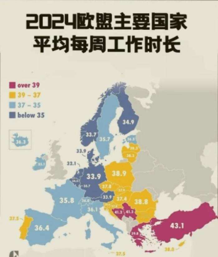 我们一提起欧盟国家的打工人,是不是第一反应是“朝九晚五、周末必休,一年带薪假比上班天数还多”?最近欧盟的希腊刚通过一项法案,允许工人每天最多干13小时、一年能连干37天这种“卷王操作”,引发了全国罢工,大骂这是“现代奴役”;反观荷兰人平均每周才工作32.1小时,堪称欧盟“摸鱼天花板”。这反差感直接拉满! 欧洲的工作时间呈现出明显的南北差异。南欧国家如希腊、马耳他等地,工作时间普遍较长,而北欧国家如荷兰、丹麦等则工时较短。 这是一场围绕经济结构、产业水平的差异化。 我们看看欧盟统计局2025年的最新数据,他们也很分裂,每周工时最长的阵营里,希腊以39.8小时领跑,波兰、罗马尼亚紧随其后,基本都在38小时以上;而最短的阵营里,荷兰32.1小时,丹麦、德国都是33.9小时,比希腊少了近7小时。欧盟国家的工时分布呈现出了“西短东长、北松南紧”的鲜明格局。 这背后的核心逻辑其实很简单,工时长短,本质是产业水平决定的“效率选择”,而不是勤奋程度的比拼。荷兰、丹麦这些西欧北欧国家,早就摆脱了靠“拼时间”赚钱的阶段,支柱产业是高端制造、金融服务、科技研发这些高附加值领域。就像荷兰的光刻机产业,靠的是技术垄断和精准研发,不是工人加班熬夜;丹麦的农业合作社,靠的是标准化流程和品牌溢价,也不是面朝黄土背朝天。 这些行业里,32小时工作制不仅不影响产能,反而因为员工幸福感高、病假率下降,生产力还提升了22%。 而希腊、波兰这些国家就不一样了,经济还依赖农业、传统制造业、旅游业这些劳动密集型产业。这些行业的特点就是“时间换产量”,比如希腊的小餐馆、旅游业,旺季必须靠延长工时才能接住客流;波兰的制造业工厂,还在靠密集劳动降低成本。更无奈的还是希腊政府,经历了债务危机后经济复苏乏力,政府只能靠放宽工时限制吸引投资,本质是“用劳动者权益换经济喘息空间”,这种方式只会让工人更累、消费更弱,陷入恶性循环。 还有个特别有意思的点,欧盟的兼职率和工时成反比。荷兰兼职率高达26.8%,很多人选择“半工半休”平衡生活,希腊兼职率只有6.1%,大家只能靠一份全职工作硬扛。这背后其实是福利体系的差异,西欧北欧的社保、育儿福利完善,不用靠“打满工时”保障生活;而东欧南欧的福利相对薄弱,劳动者只能通过延长工时多赚钱,反而陷入“越忙越穷,越穷越忙”的怪圈。 欧盟的工时分裂,是经济发展阶段的真实写照,这是与国家的发展阶段相匹配的。欧洲的工作时间图景仿佛一面多棱镜,折射出经济发展水平、文化传统、福利制度等多种因素的复杂交织下的不同。 没有所谓“统一”的欧洲工作模式,只有各自寻找平衡点的努力,我们何尝不是如此。