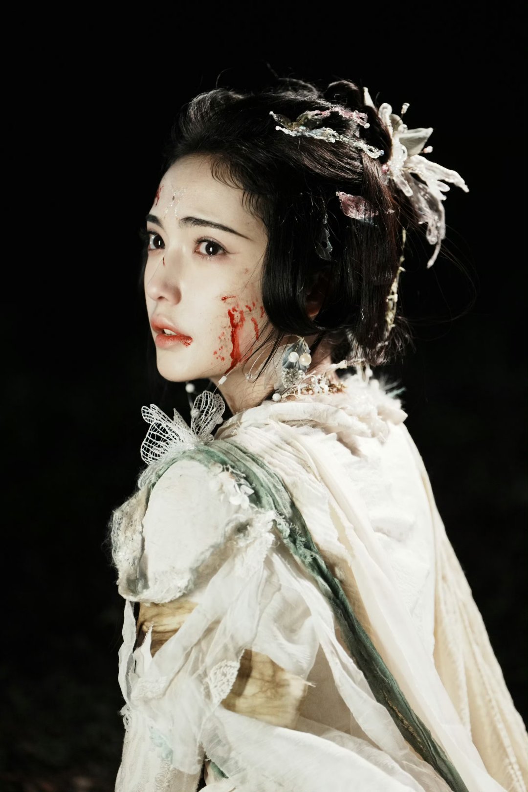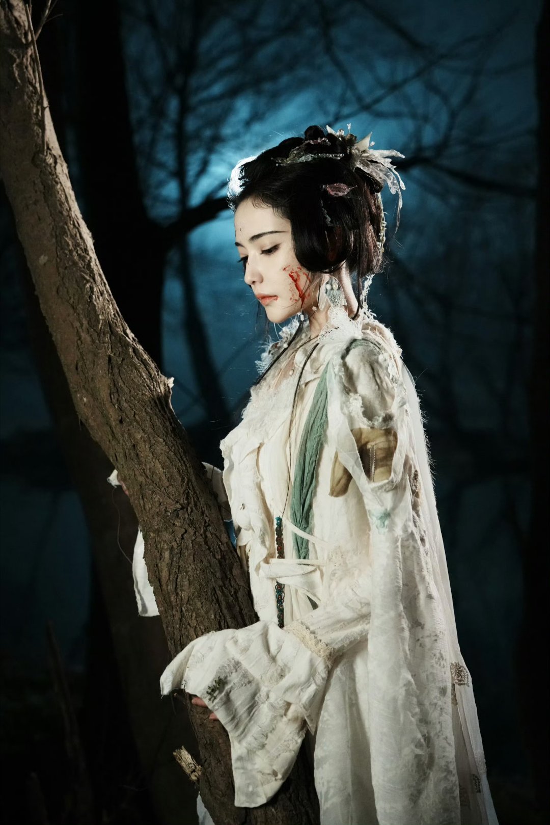 加奈那坠落神明的破碎感当神明折断翅膀堕入凡尘,血是她的冠冕,傲骨是最后的神性。她用蛾妖皮囊藏起神格,眼神却泄露九重天的过往