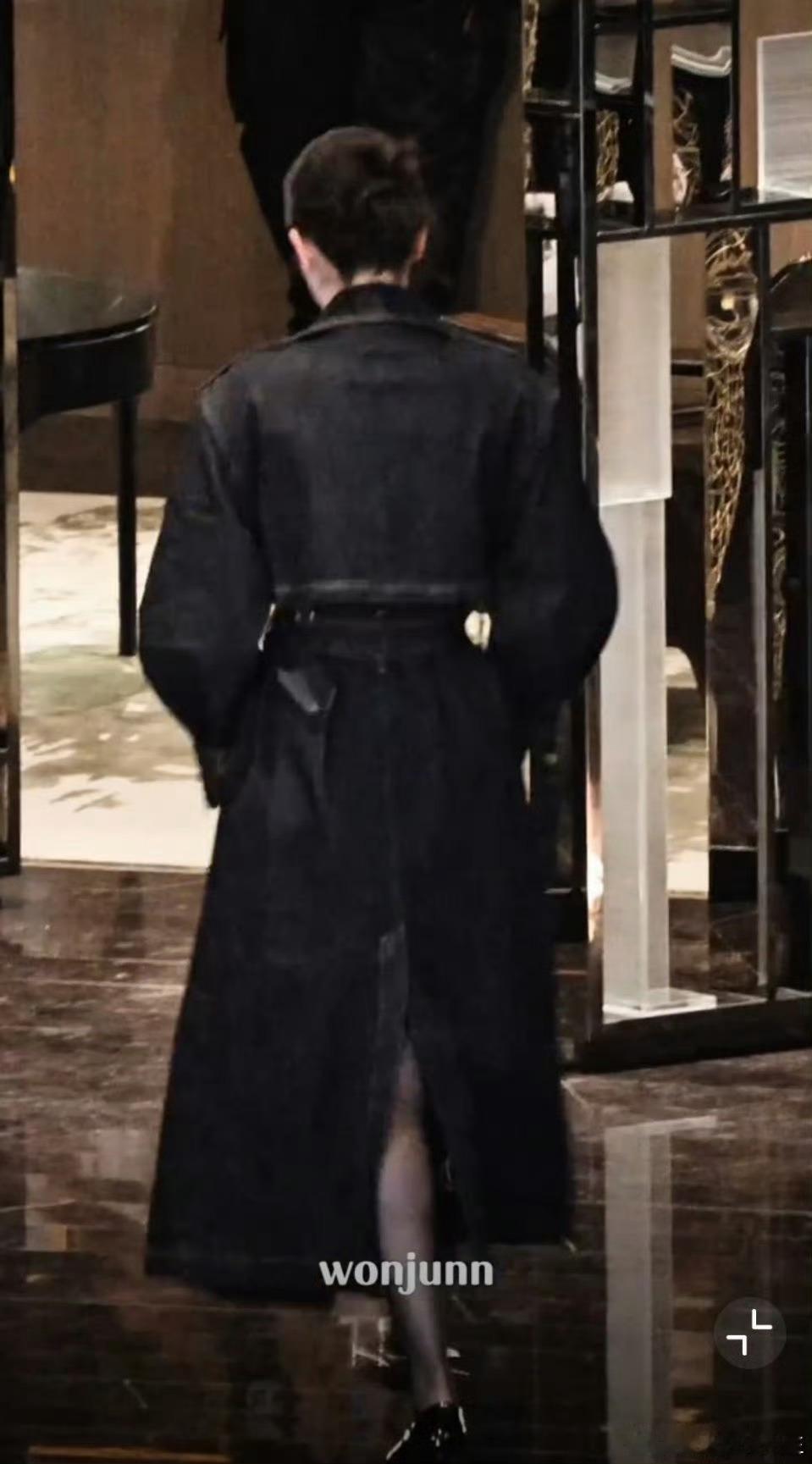 迪丽热巴卫蓝牛仔大衣黑丝造型