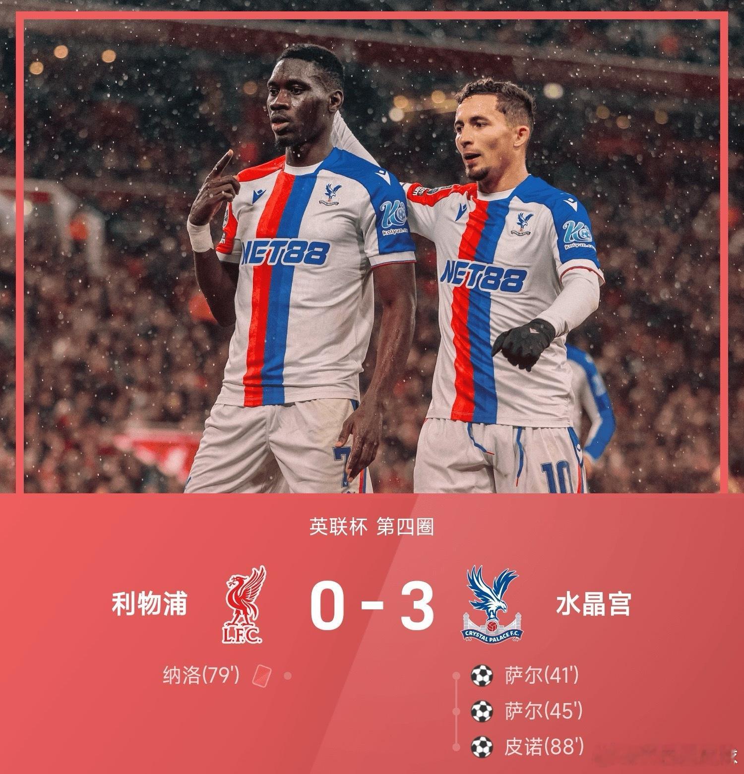 英联杯战报:萨尔双响,皮诺建功,水晶宫3-0客胜利物浦利物浦3-0水晶宫