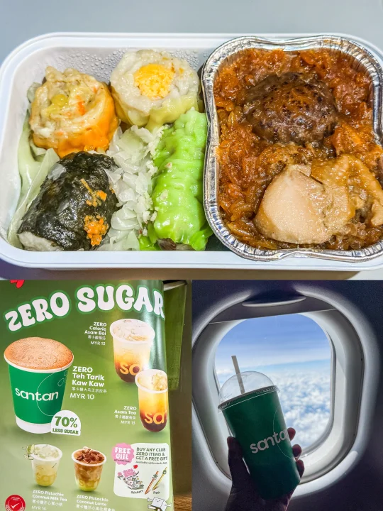🍱非常喜欢亚航的餐食,美味又个性化的Santan,很爱东南亚的纳斯伯椰浆饭、冰咖啡、冰泰式奶茶等等,还有泡面,⭐提前24h以上在官网订低至8折哦。