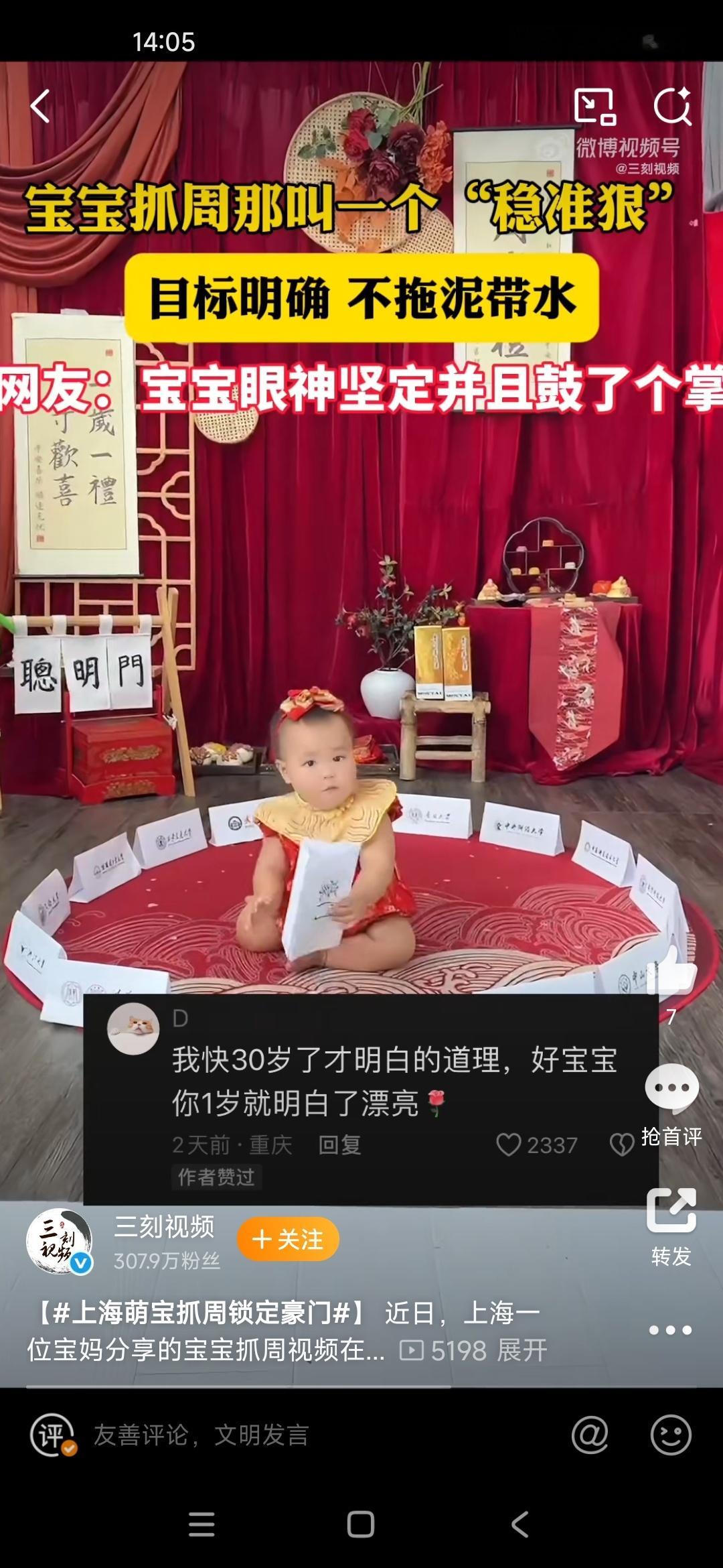 上海萌宝抓周锁定豪门哈哈哈,看来宝宝将来一定会成为豪门呀,从小就安排的明明白白[哈哈][哈哈]