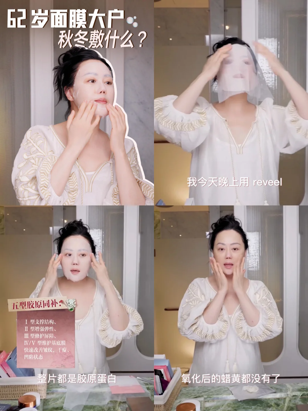 章小蕙晒面膜大户的秋冬敷面膜vlog ✨谁能相信姐姐已经62岁了!看她打开那个满满当当的面膜收藏柜真的惊到我了...不愧是护肤界天花板💫 姐直接上脸展示,reveel这个胶原蛋白面膜敷完脸都亮了!🌟直播间这个机制也很绝,护肤这块还得看章小蕙! 图片cr:章小蕙