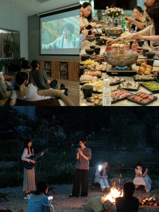 设共享会议室(配投影)、庭院烧烤区与 KTV 室