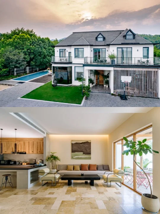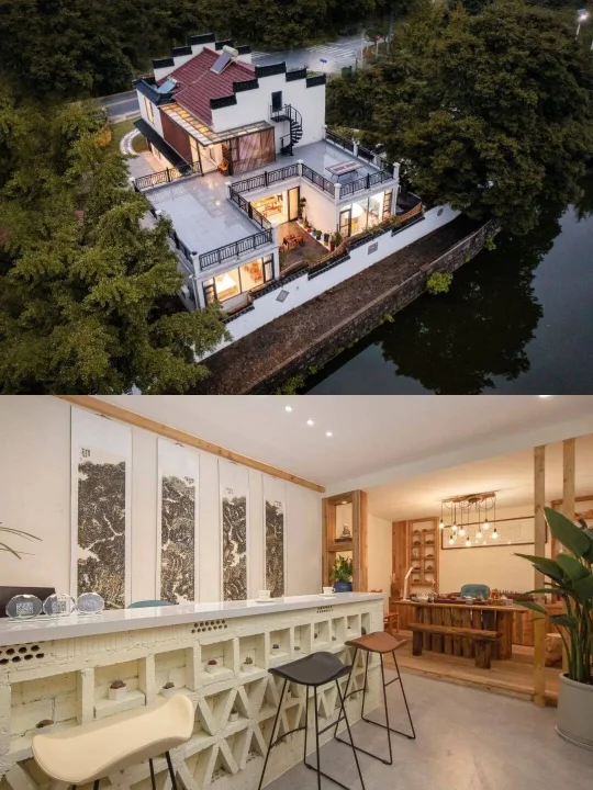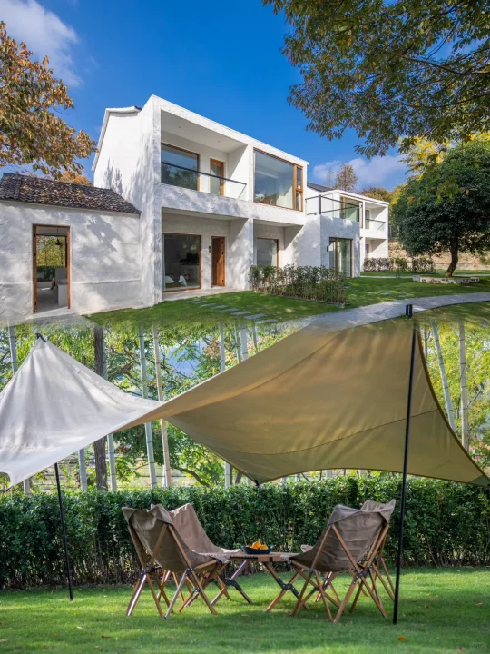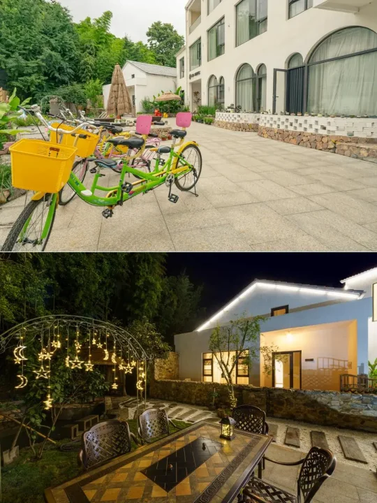 隐于山林间,设共享私汤池、庭院烧烤区与小型会议室