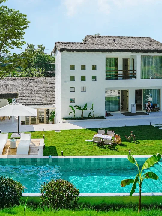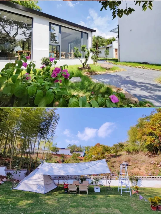 隐于青山间,设亲子游乐区、庭院烧烤台