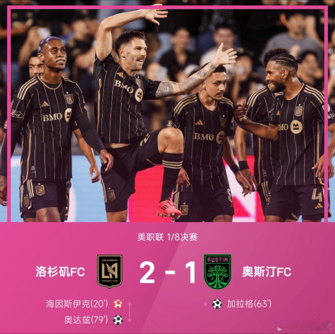 10月30日讯 25赛季美职联1/8决赛首回合,洛杉矶FC2-1战胜奥斯汀FC。上半场,霍林斯赫德制造海因斯伊克乌龙,洛杉矶FC取得领先;下半场,加拉格一度为奥斯汀FC扳平比分,博安加随后射门造成折射、奥达兹门线补射制胜,洛杉矶FC最终主场2-1战胜对手,总比分1-0领先。