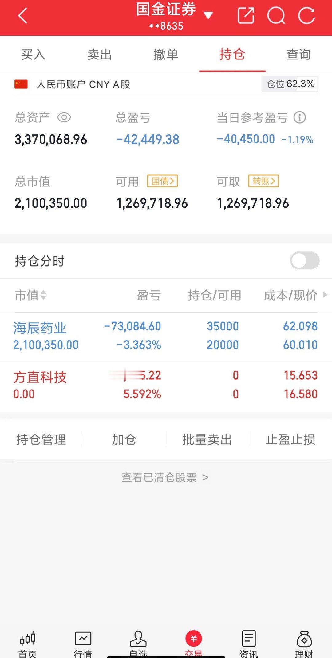收盘了,方直科技已出,海辰药业下午加了点仓