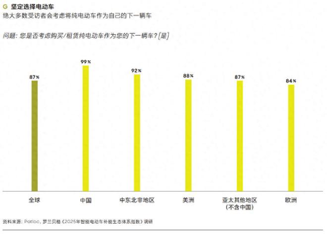全球咨询公司罗兰贝格在近期发布的《2025年智能电动车补能生态体系指数》披露,“99%的中国纯电动车用户受访者表示,下次会考虑继续购买纯电动车。” 这份调研报告指出,过去两年的全球电动车使用量仍稳步增长,但不同地区之间的发展呈现出较大差异。从全球情况看,中国继续领跑,电动车销售渗透率从2023年的36%提升至2024年的49%。 而领跑原因归结于,持续增长的电动车保有量,且在补能设施发展方面表现不凡,而与中国市场相比,欧洲市场的新能源渗透率则基本停滞不前。 点个关注吧!汽节车社,车圈热点资讯每日一扫清!【来自懂车帝车友圈】