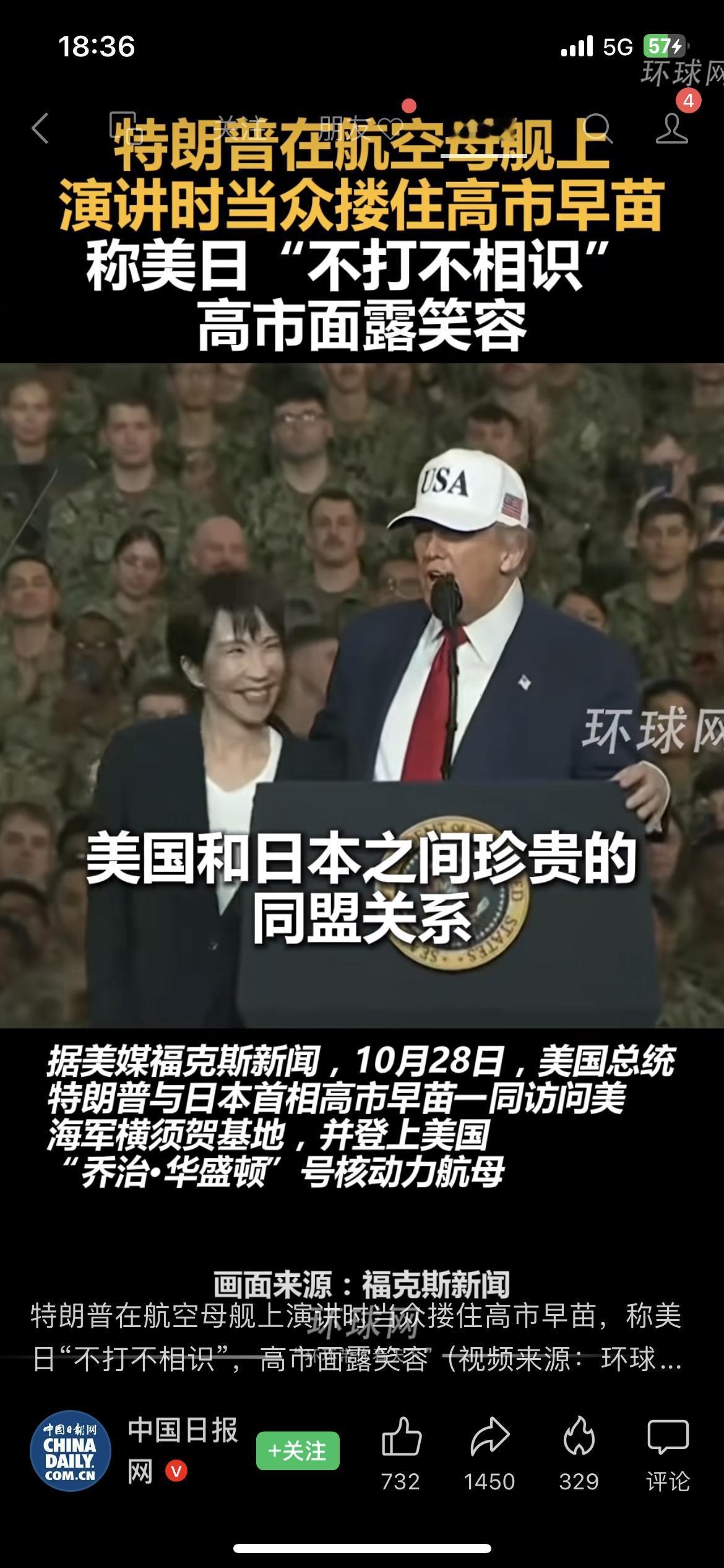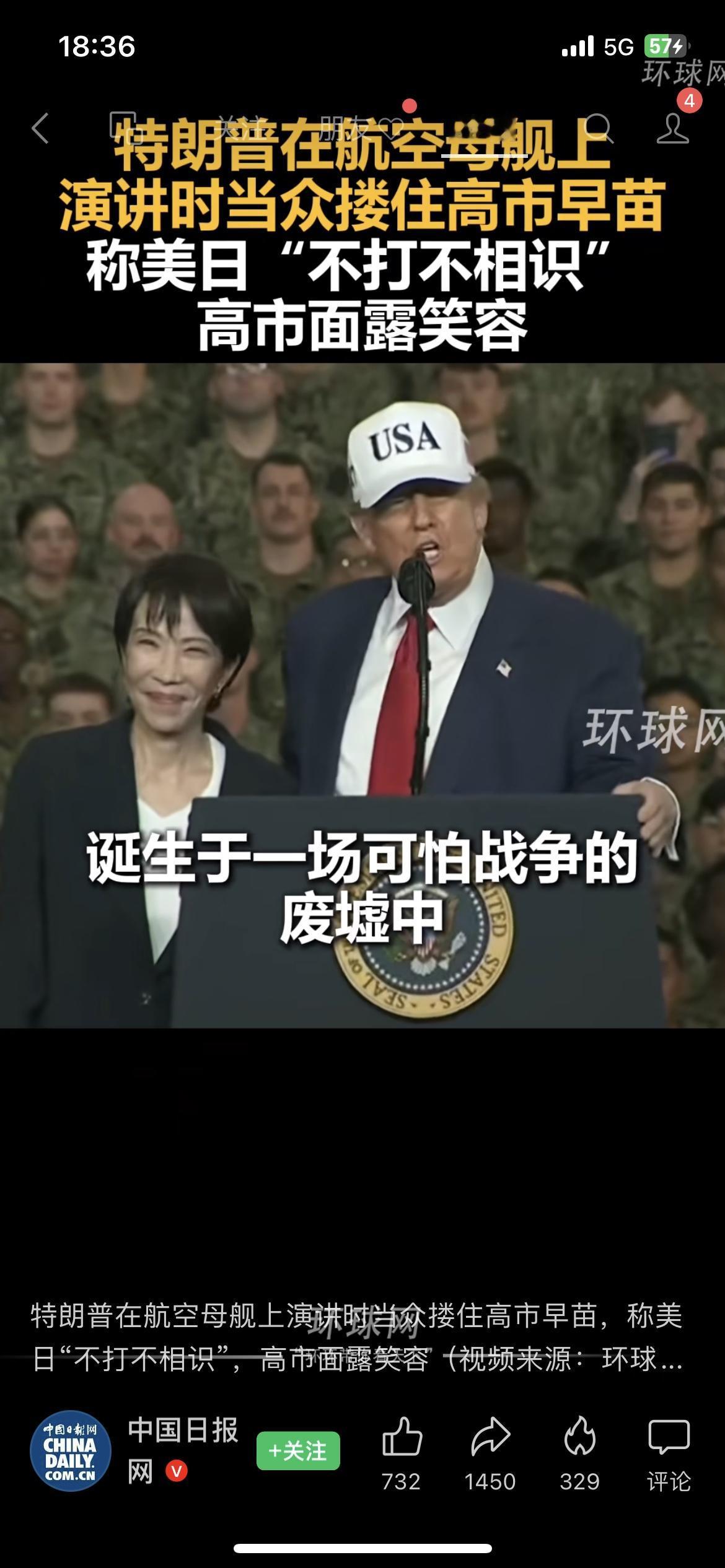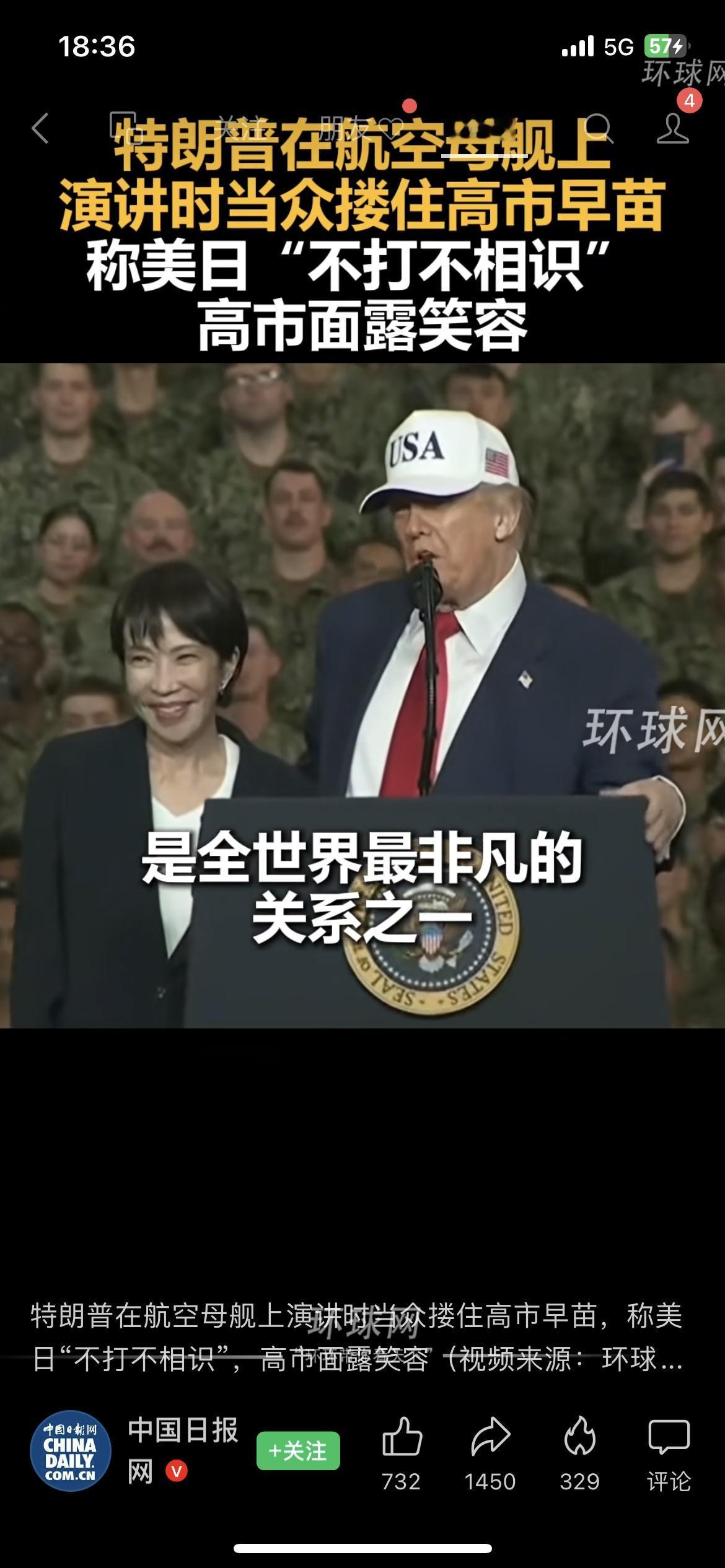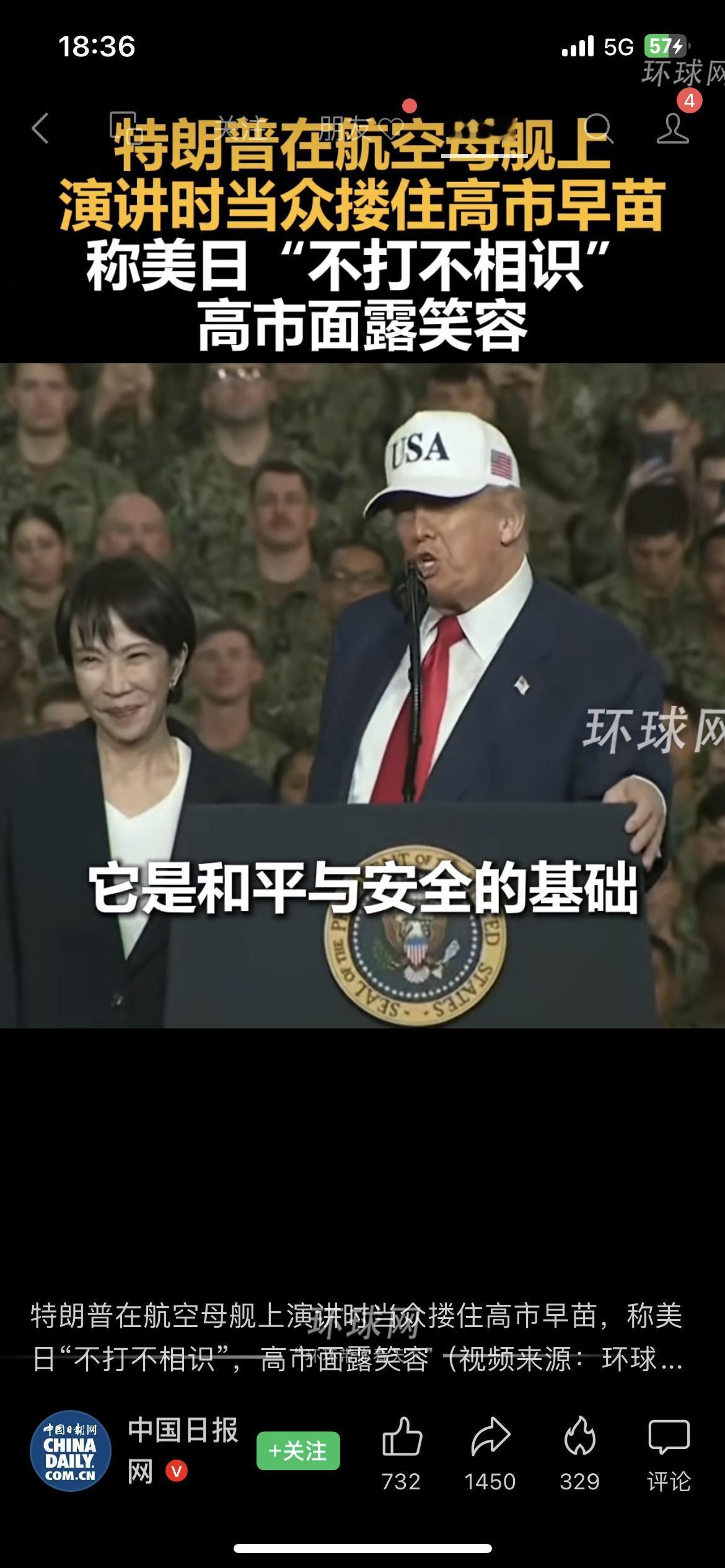 特朗普航母搂高市早苗,称“不打不相识” 航母上!特朗普突然搂抱日首相 刚刷到这画面:特朗普在美军航母演讲时,突然伸手搂住日本首相高市早苗,还笑着说美日“不打不相识”! 现场一堆美军盯着,高市早苗脸都笑僵了。这操作也太“放飞”了,你觉得这是真熟还是装的? 这场面太抓马了,转给朋友一起吐槽下这波“迷之互动”!