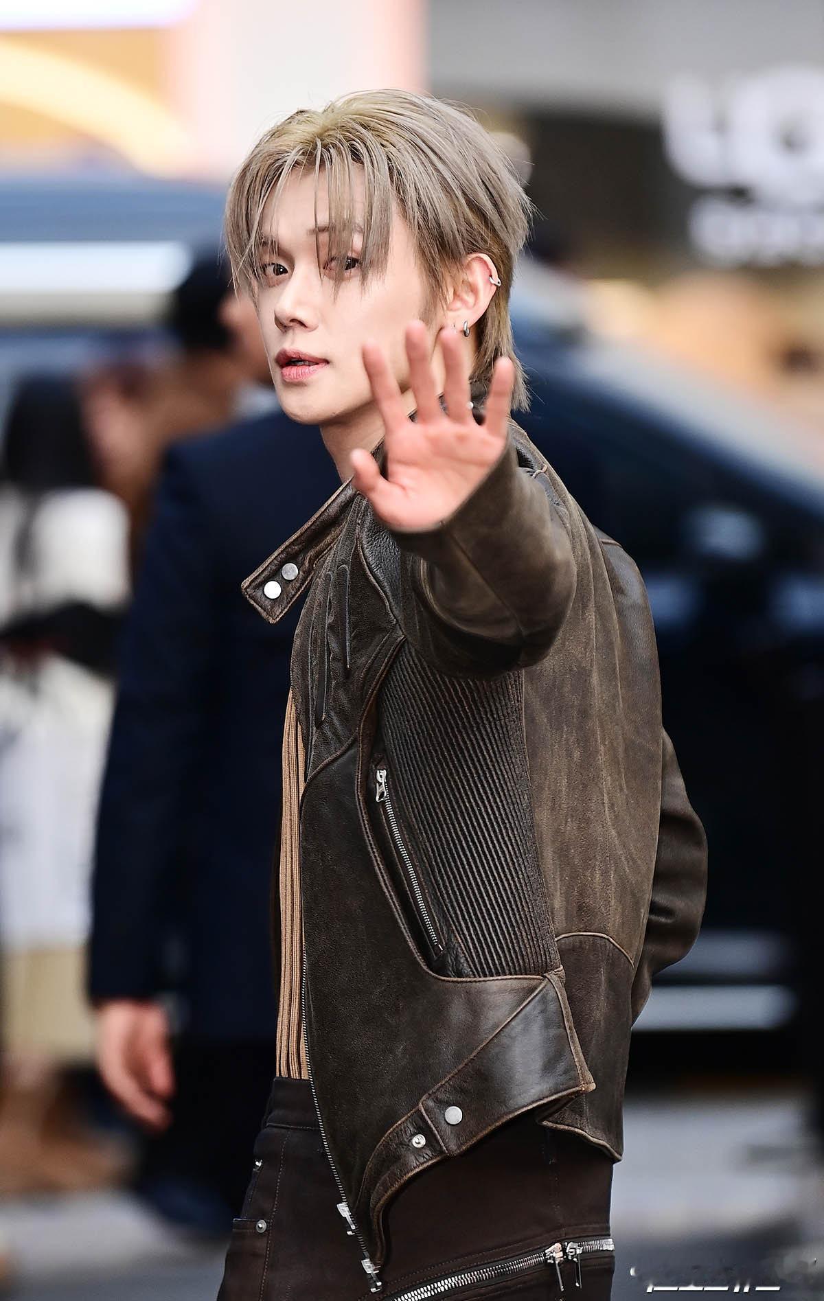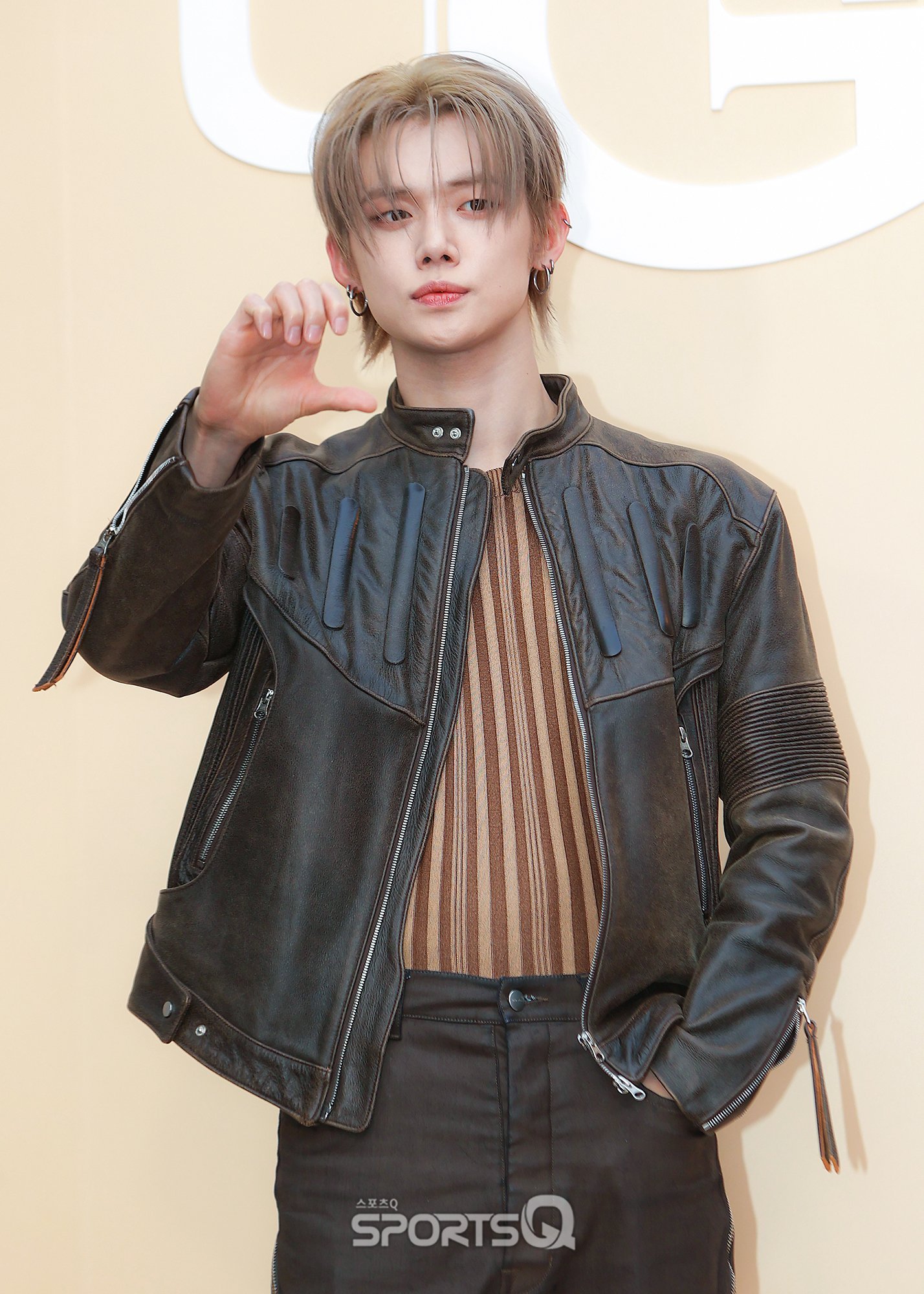 Yeonjun加入品牌大家庭后的首个线下活动,棕色夹克的秋冬型男风格亮相。