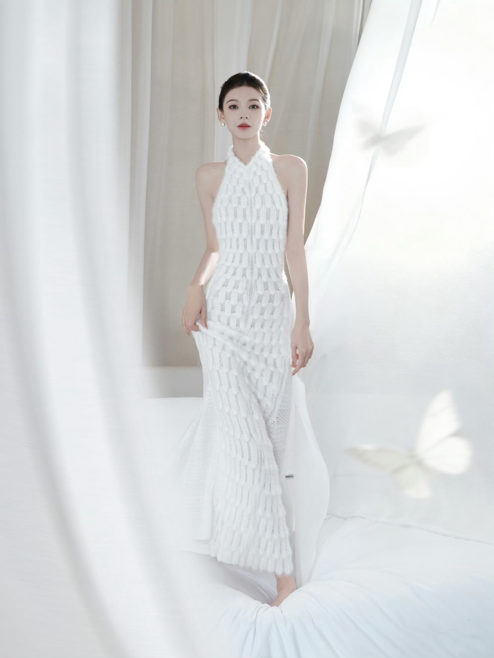刘亦菲把死亡玫粉穿出了定制款的感觉,这种颜色普通人穿上分分钟黑三度,她居然能穿出