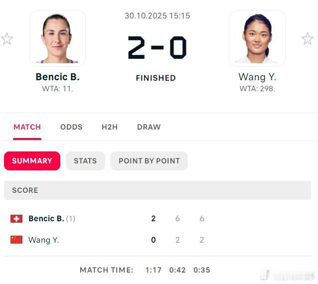 🇨🇳王雅繁26,26不敌头号种子本西奇🇨🇭