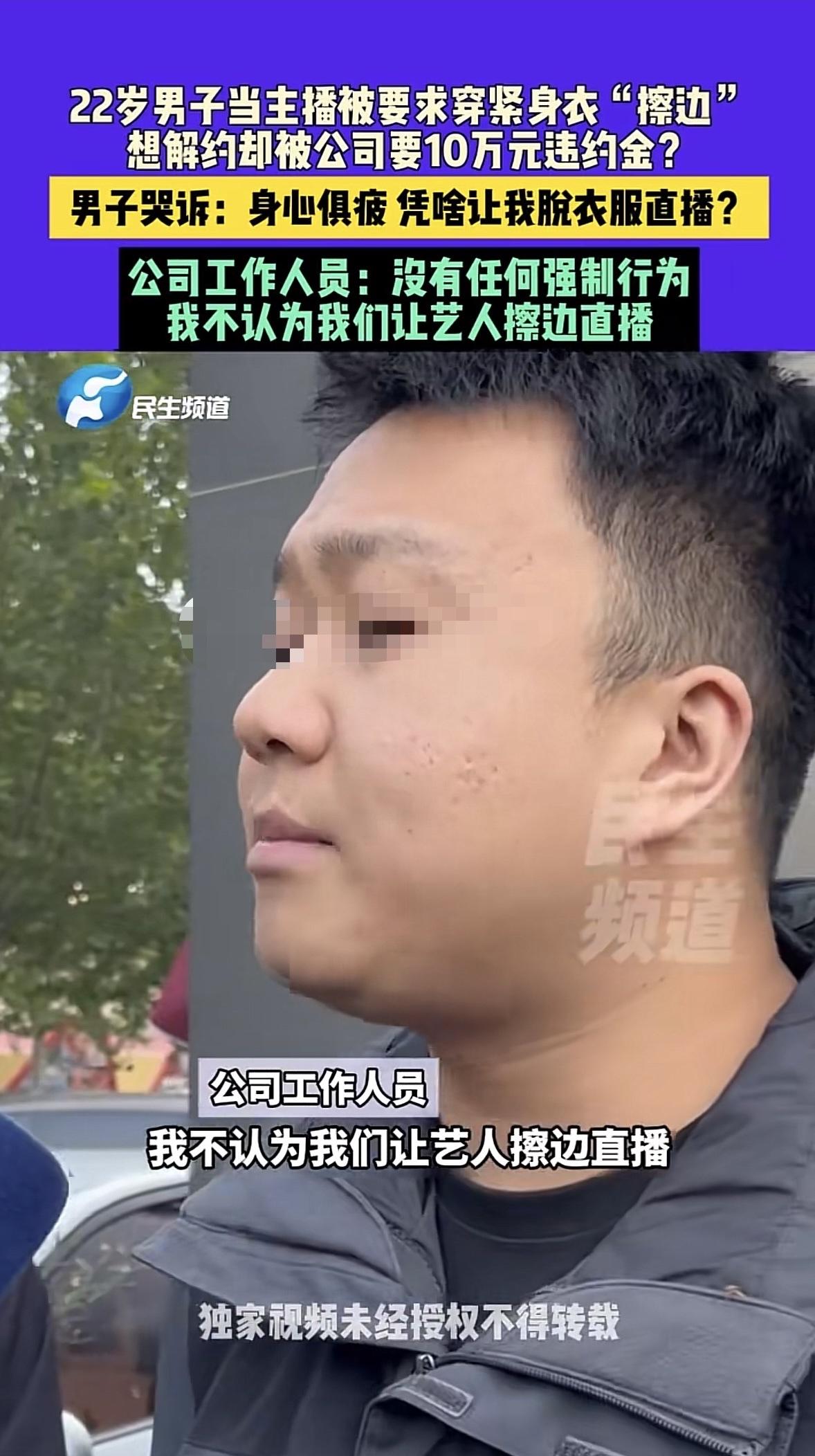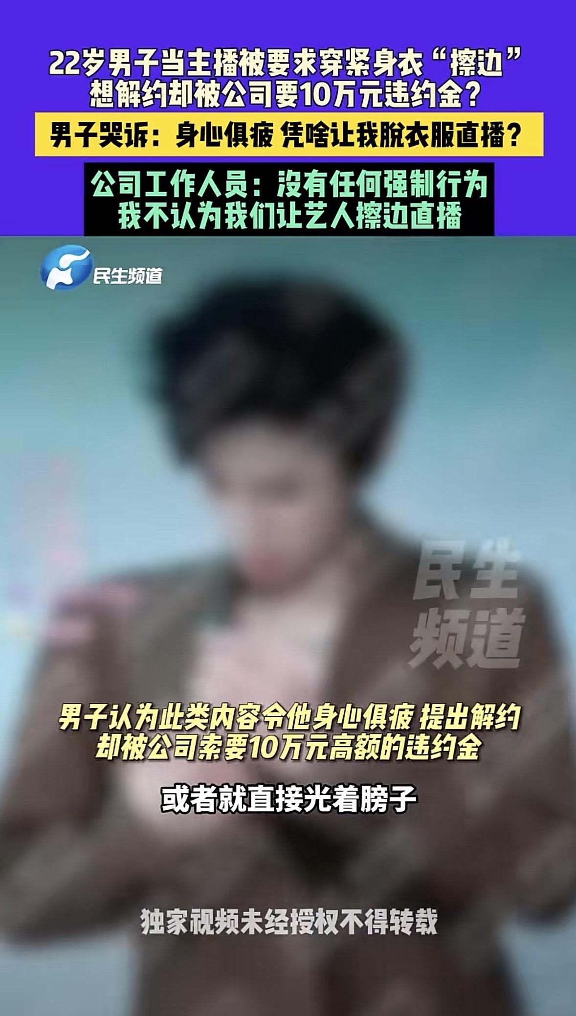 河南洛阳,22岁男子一毕业就去当娱乐主播,为了有流量,公司不是让他穿紧身衣,就是让他在镜头前穿着“清凉”,直播频频被封,公司却不以为然,男子受不了提出解约,却被公司索赔10万违约金,男子拿不出钱赔,很崩溃,公司的人表示,没有任何强制行为,也不认为这是让主播擦边。 22岁的小黄是一家娱乐公司的签约主播,刚从学校毕业的他原本想着靠直播赚点生活费,没成想这半年活成了“苦行僧”。 他每天早上6点出门,晚上7、8点才拖着疲惫的身子回家,哪想到,赚的钱还没捂热乎,就得倒贴回去给公司。 今年6月份,公司突然要求他改变直播风格,从原来的才艺表演转成“擦边”路线。 刚开始是让他穿紧身衣,后来直接让他光着膀子随便套件“清凉”的衣服直播。 小黄心里是百般不乐意的,他打心底觉得这根本不是正经直播。 可运营人员却说,这是新路线,流量高!你赚得也多。 小黄没办法,他一个主播,凡事都得听运营的安排,人家让他干啥,他就得干啥,没有拒绝的余地。 结果还没播两天,他的直播间就因“涉嫌性暗示”被封了号。 小黄几次申诉未果,只好私下找运营,说哥,再这么播真不行,一整就封号,哪是长久之计? 运营却满不在乎地说,封了就你再开新号嘛,公司有资源,怕啥? 可小黄心里清楚,每次封号都要重新养号,粉丝流失不说,还耽误时间。 更让他难受的是,直播间里总有些观众发些不三不四的弹幕,评论区也充斥着低俗言论,让他觉得自己的努力换来的却是尊严被践踏。 真正压垮他的最后一根稻草是公司的态度。 当他实在受不了,提出要解约时,公司直接甩出一份违约金条款,上面写着,他想走也可以,必须交付违约金10万。 小黄顿觉五雷轰顶,因为他辛辛苦苦赚的钱,根本不赔的。 他跟公司理论,说明明是你们先让我搞擦边,封号也是你们的主意,现在反而要我赔钱? 可公司的人却说,合同白纸黑字写着呢,你违约就得赔。 这事儿搁谁身上都得崩溃。小黄每天起早贪黑,就盼着能靠直播站稳脚跟,结果钱没赚到,倒欠公司一屁股债。 他找到记者求助,在镜头前哭诉道:我刚毕业容易吗?一路走过来赚得都是辛苦钱,如今赚得钱又得全还给公司,这分明是把我往火坑里推啊! 更让他心寒的是,公司明明知道封号风险,却把他当“试验品”推到风口浪尖,出事了就让他扛着。 公司那边也有说法。 工作人员出面没好气地回应,说我们不认为这是让艺人在搞擦边直播,也没有任何强制性行为,威胁他你不穿我们就会怎么怎么样。 小黄心里清楚,运营天天盯着直播数据,稍微流量差了就催着“加码”,这种隐形的压力比明着逼迫还难受。 他表示,自己每天开播前我都得做半天心理建设,想着今天又要被多少人指指点点,这种日子谁受得了? 现在小黄每天都在纠结:继续播吧,心里过不去那道坎,解约吧,又赔不起违约金。 他想着自己当初刚入行时满怀憧憬的样子,一心想着多赚点钱养活自己,也能拿着赚来的钱孝敬父母。 可他一想到这一路走来的艰辛和委屈,眼泪止不住地往下掉。 他不是怕吃苦,是怕吃这种没尊严的苦。他有时候觉得,钱没了可以再赚,但尊严要是丢了,这辈子都找不回来,可公司这笔违约金实在让他不知如何是好了。 有人看后提醒,说之前我看到一个告诫,其中一项就是去当直播的,公司根本不挣流量,就是为了挣违约钱,刚毕业的或没找工作的小孩们,你们一定要注意了! 这个公司有这样的要求,事先都想好了,要孩子的违约金,他们那里是想卖东西,说白了,就是要赚违约金,不管孩子的死活,其心可诛,这样的公司,法律应该给予重罚。 也有人说,虽然很同情他的遭遇,但他如果和公司签了合约就没办法了,这种情况到法院也得赔钱,因为相关法规不健全。朋友的妹妹20出头被忽悠签约了主播,遇到同样的问题告到法院去了,最后协商6万赔偿了直播公司… 那么,从法律角度,怎么看待公司的行为? 根据《民法典》第153条,违反公序良俗的民事法律行为无效。 公司通过格式合同强制小黄接受此类工作内容并设置高额违约金,属于以合法形式掩盖非法目的,该条款自始无效。 根据《劳动合同法》第38条,如果用人单位未按照劳动合同约定提供劳动保护或劳动条件,劳动者可单方解除劳动合同。 公司擅自变更直播内容至“擦边”路线,已构成对原合同内容的实质性变更,小黄有权以此为由解除合同。 此时公司反索要违约金,实质是将经营风险转嫁给劳动者,与“违约金不得限制劳动者解约权”的立法精神相悖。 小黄每日工作12小时以上的超长工时,已涉嫌违反《劳动法》第36条关于每日工作时间不超过8小时、平均每周不超过44小时的规定。 公司以“流量考核”为由变相强制加班,并利用违约金条款限制劳动者解约自由,构成对劳动者休息权和择业权的双重侵害。 对此,你怎么看? 关注@运良说法. 学法律知识不迷路