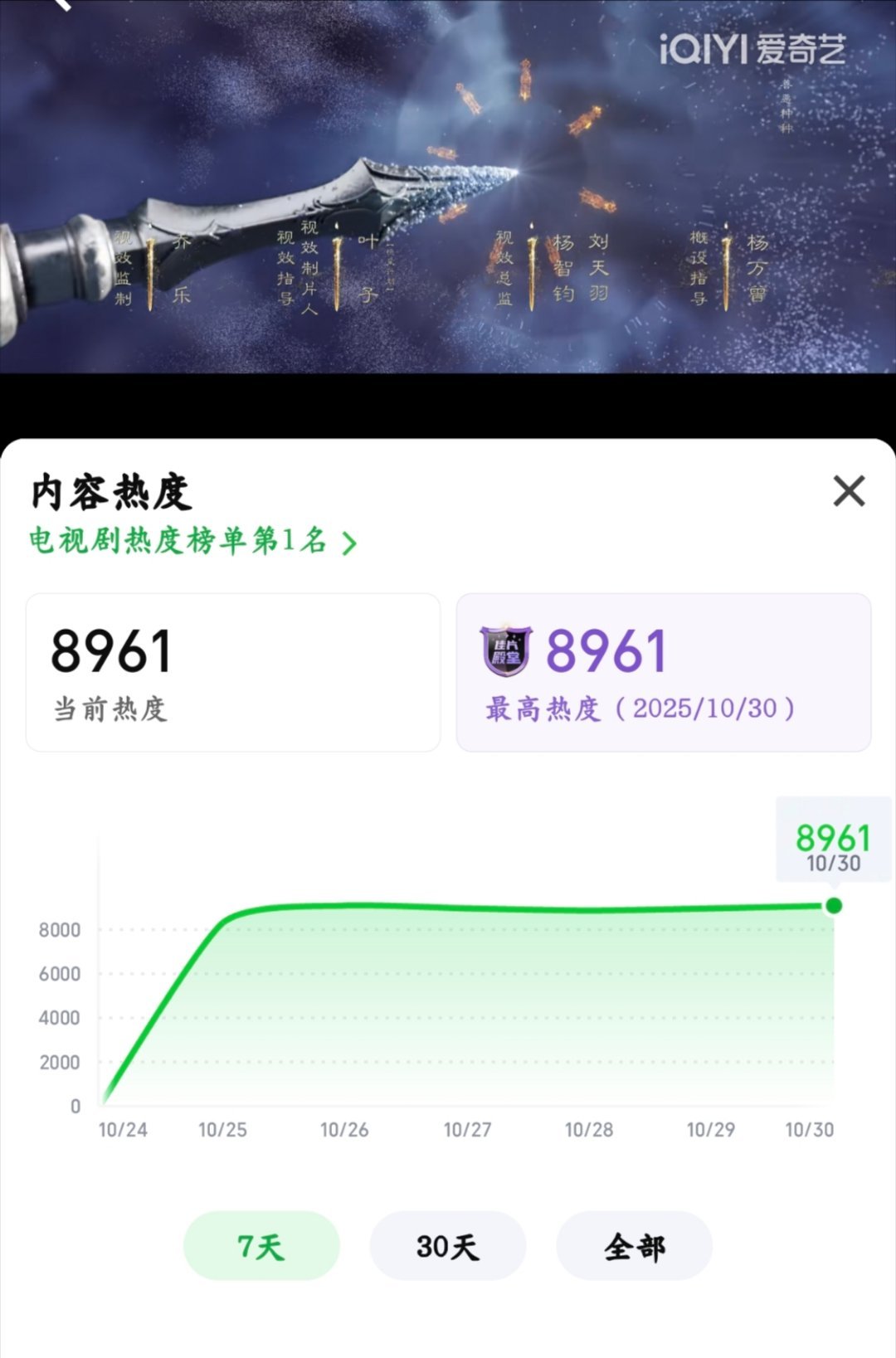 恭喜成毅天地剑心为史最快速度⚡️爱奇艺🥝破8000剧集。剧首日热度🔥历史第一