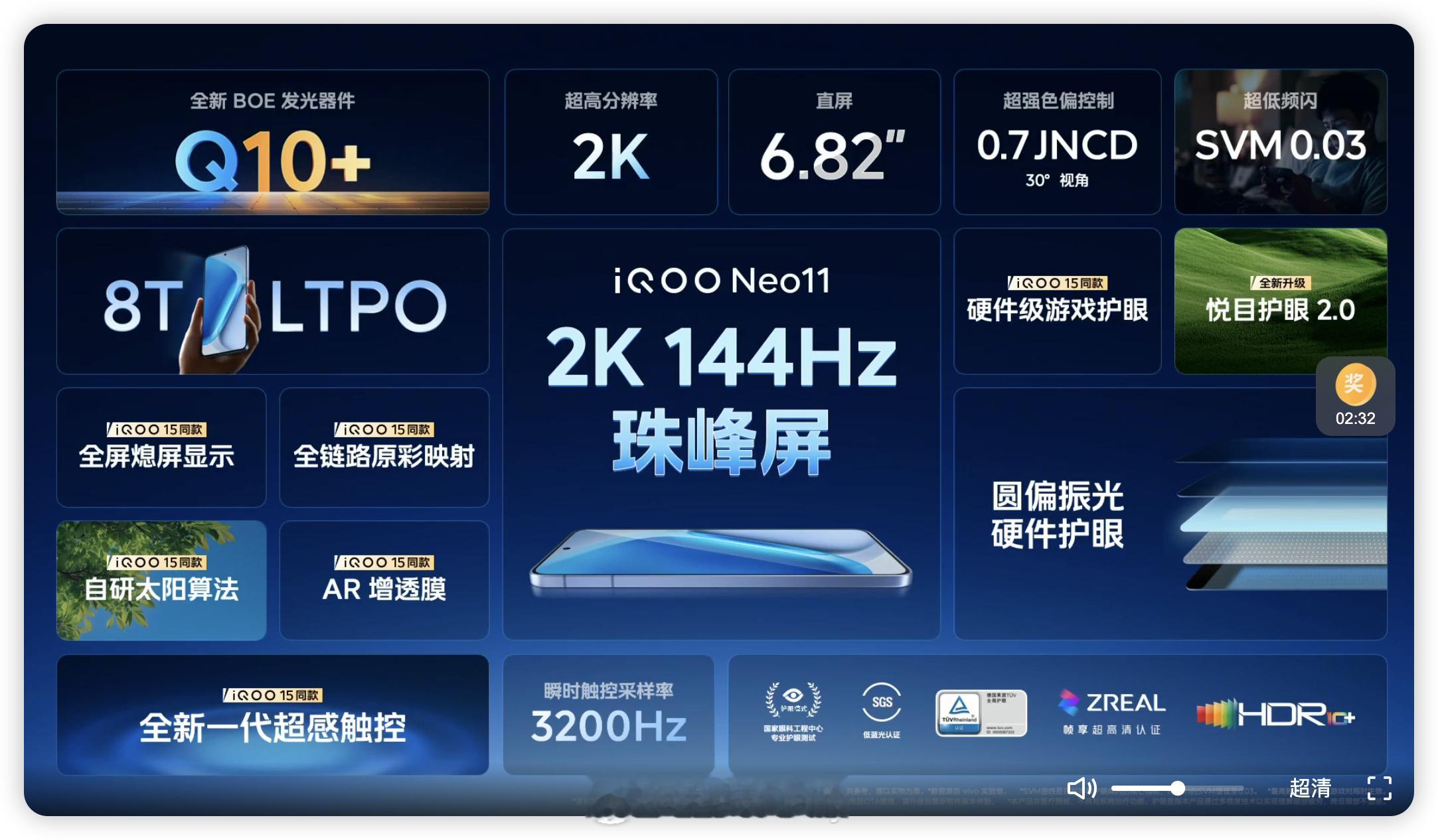 iQOO Neo11 2K屏幕,1.5K功耗,2K 144Hz珠峰屏是真的顶。