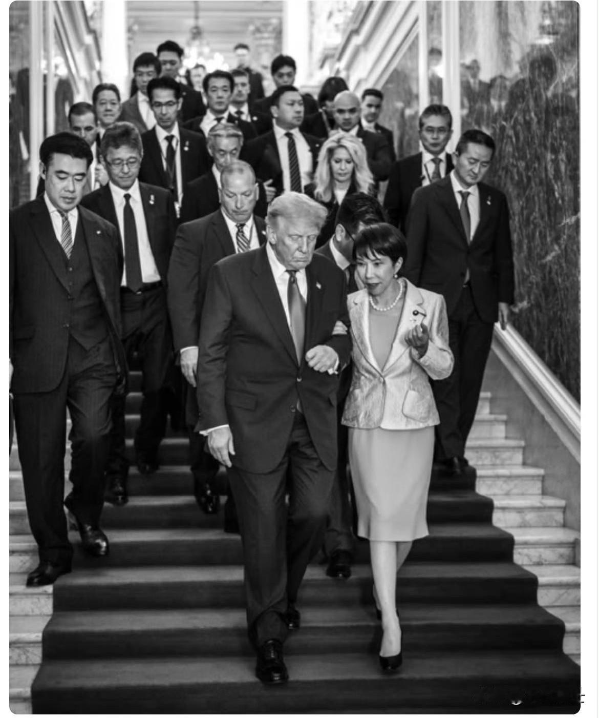 懂王在结束R本之行在自己的社交账号发了一张照片。高市亲昵的挽着懂王一路走来,眼神里也是款款深情,颇有一种恋恋不舍的味道在里面。回看懂王访R期间高市的表现,简直把谄媚、可笑展示的淋漓尽致,估计这个世界上除了日本人,都会被这个R本首相的表演逗乐了吧!而懂王放出这张照片,也是在向世界昭示这个盟友对自己的崇拜。 还有网友脑洞大开的为懂王的R本之行,起了一个霸气的名字:霸道总裁爱上绝经的我。是不是真有些相像呢!只不过在外交场合这的可以这样暧昧亲昵吗?